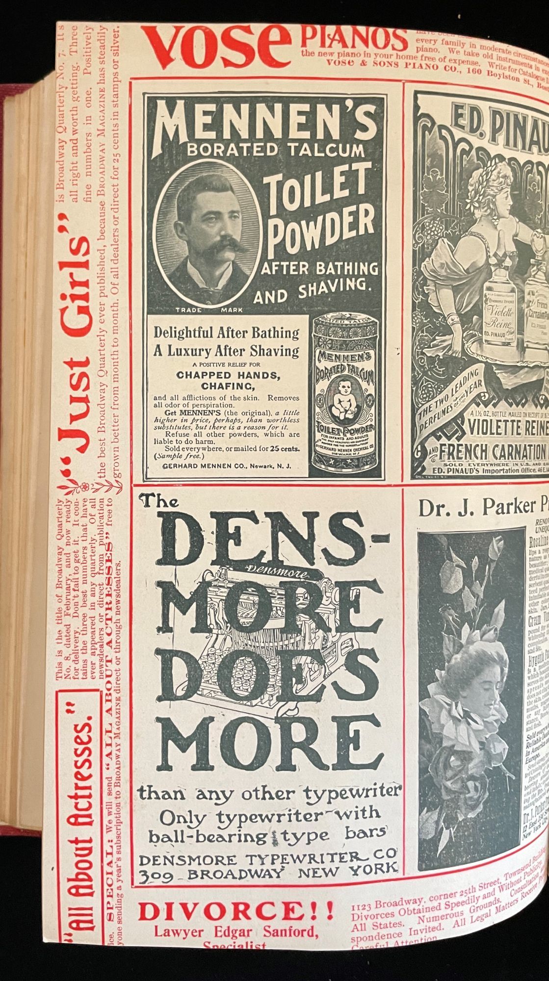NY: Broadway Magazine, 1900. 1st Edition. Hardcover. Near Fine. Six monthly issues, Oct 1900 - March 1901, some covers trimmed. Loas of photographs of long-forgotten actors, and lots of advertisements. Remarkably well-preserved.