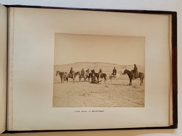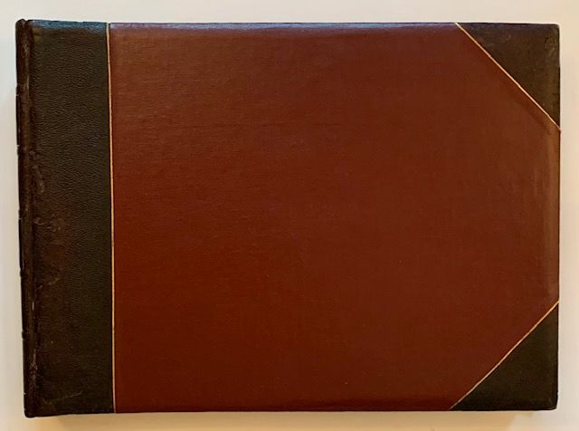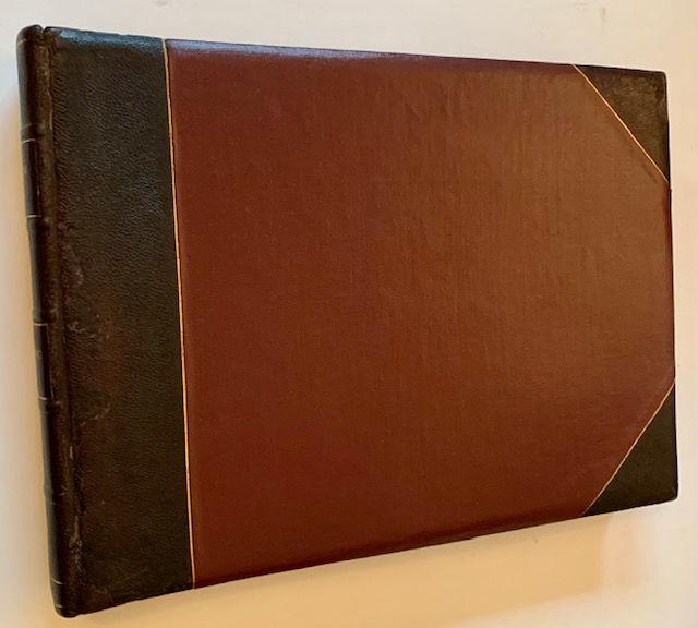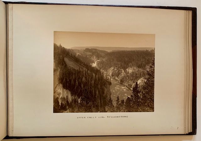 1887. 1/4 leather. Very Good +. A meticulously-crafted album of 29 original, mounted photographs of Yellowstone, all or most of them likely taken in 1887 and purchased directly from the 14-year old National Park. Though the photos are uncredited, we can surmise that photographers such as Thomas Hine, Charles D. Loughrey, Frank Jay Haynes (the official photographer of Yellowstone National Park) or even the renowned William Henry Jackson may have been responsible for some of these photos. All but one of the photos is nicely hand-captioned by a former owner (possibly Joseph D. Potts, whose name adorns the first blank endpaper), the captions serving as crucial identifiers to specific geysers, craters, falls, buildings, etc. The photographs, while all varying slightly in size, are each roughly 8 1/2" wide x 6 1/2" tall. The fragile album itself, a thick, oblong folio, has been professionally restored at its exterior, with recent, wine-red cloth boards laid over the original leather spine and tips, which have been skillfully re-touched to make for an appealing, very presentable piece of Americana. (We note that no part of the interior of the album --from its front to rear endsheets and pastedowns-- has been altered). A wonderful, very uncommon piece of Yellowstone history -- as well as a significant example of late 19th century American landscape photography.