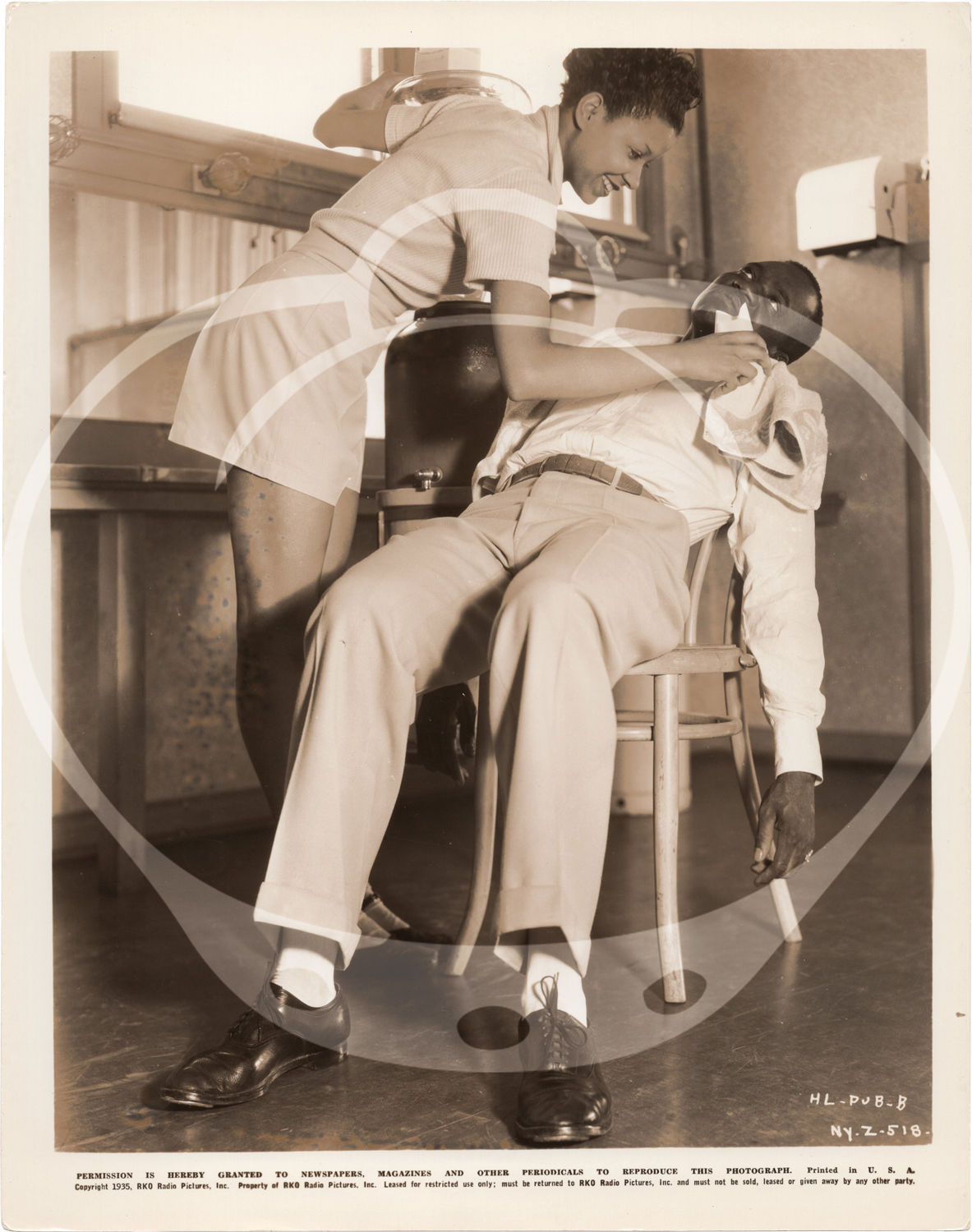 Culver City, CA: RKO Radio Pictures, 1935. Five vintage reference photographs from the 1935 film, three showing actor Bill "Bojangles" Robinson dancing, and two showing Robinson on the set with actress Jeni LeGon.