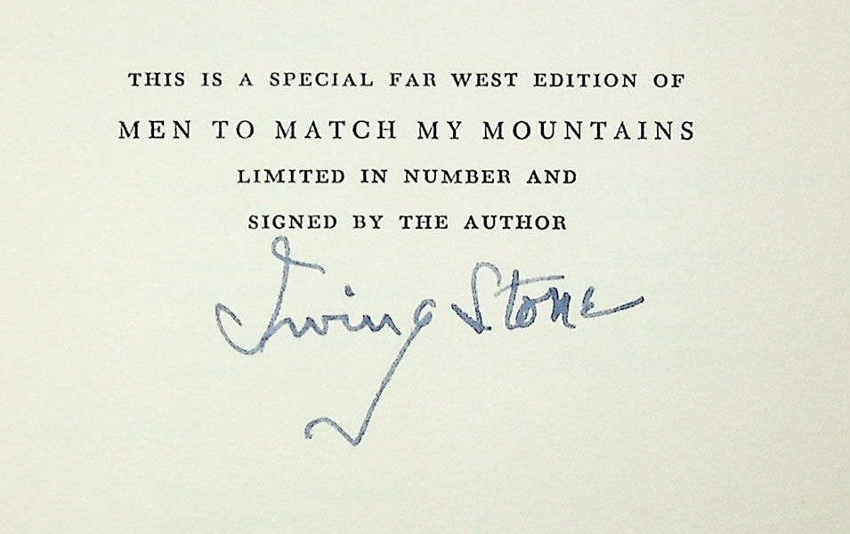 Garden City: Doubleday, 1956. First Edition. First printing. Special "Far West" issue, one of an unspecified number of leatherbound copies signed by the author. Octavo. Decorated faux leather over boards; 460,(9)pp; map endpapers; unprinted acetate dustwrapper. Fine copy; acetate lightly scuffed and with a closed tear at one margin; Very Good. A volume in the Doubleday "Mainstream of America" series, advertisements for which appear at end of text.