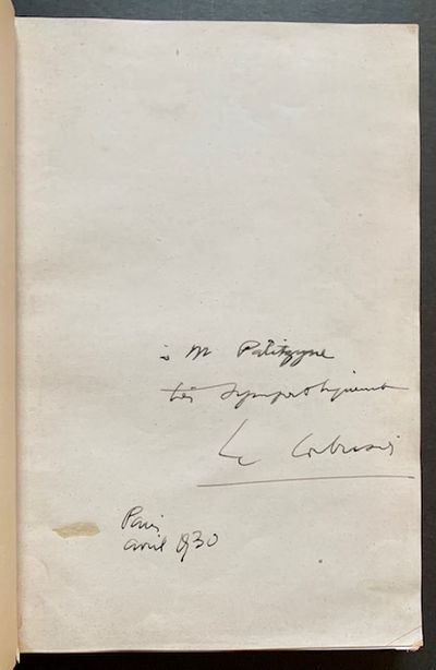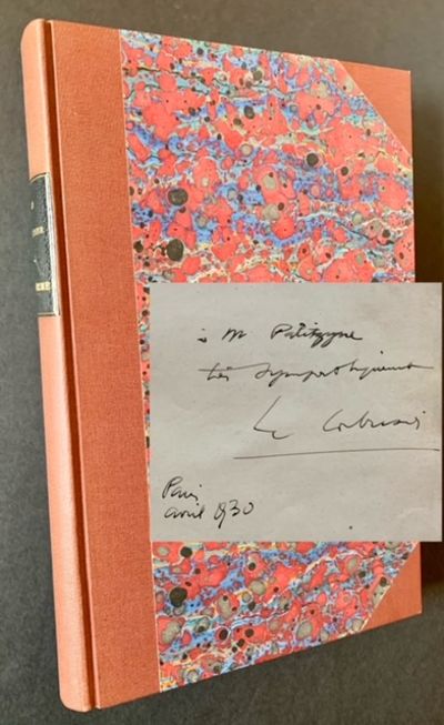 Paris: Les Editions G. Cres, 1930. 1/4 Cloth. Very Good +. INSCRIBED BY LE CORBUSIER on the front free endpaper. A handsome copy to boot of the 1930 12th edition. Solid and VG+. Bound with its original front wrapper in a 1/4 cloth over marbled boards. New endsheets, leather title label at spine, tasteful bookplate to the front pastedown. Octavo, fold-out map, dozens and dozens of plans and photographs throughout.
