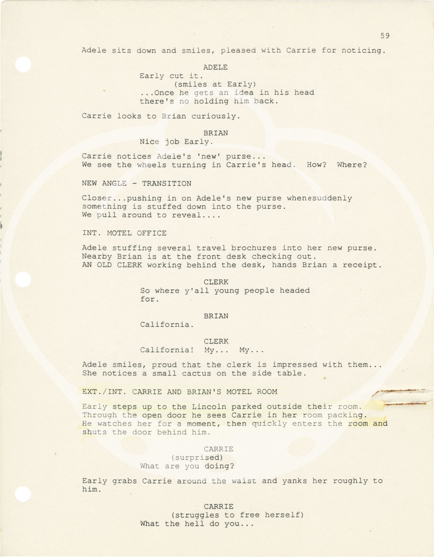 Los Angeles: Propaganda Films, 1992. Draft script for the 1993 film, seen here under the working title "California."