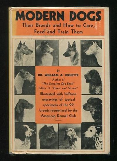 New York: Grosset & Dunlap. Near Fine in Good dj. (c.1932). Reprint. Hardcover. [a good sound book, unmarked except for a previous owner's name plus date & place of purchase in ink at the top of the front endpaper; the jacket is moderately rubbed and worn, with a quarter-size chip at the top edge of the rear panel and a 3-inch closed (and internally tape-repaired) tear at the top of the front panel, along with tiny bits of paper loss at several corners; it's also been internally (and excessively) tape-reinforced along the top and bottom edges and all folds, although thankfully with a minimum amount of bleed-through, and it still puts up a decent appearance in a new mylar cover]. (B&W halftone photographs) A very presentable copy of this vintage compendium of canine knowledge and advice-to-owners, "illustrated with halftone engravings of typical specimens of the 92 breeds recognized by the American Kennel Club." ****NOTE that additional postage charges will be assessed for international shipping of this surprisingly heavy (given its modest size) book; if this concerns you, please contact us for a shipping quote before placing your order.**** .