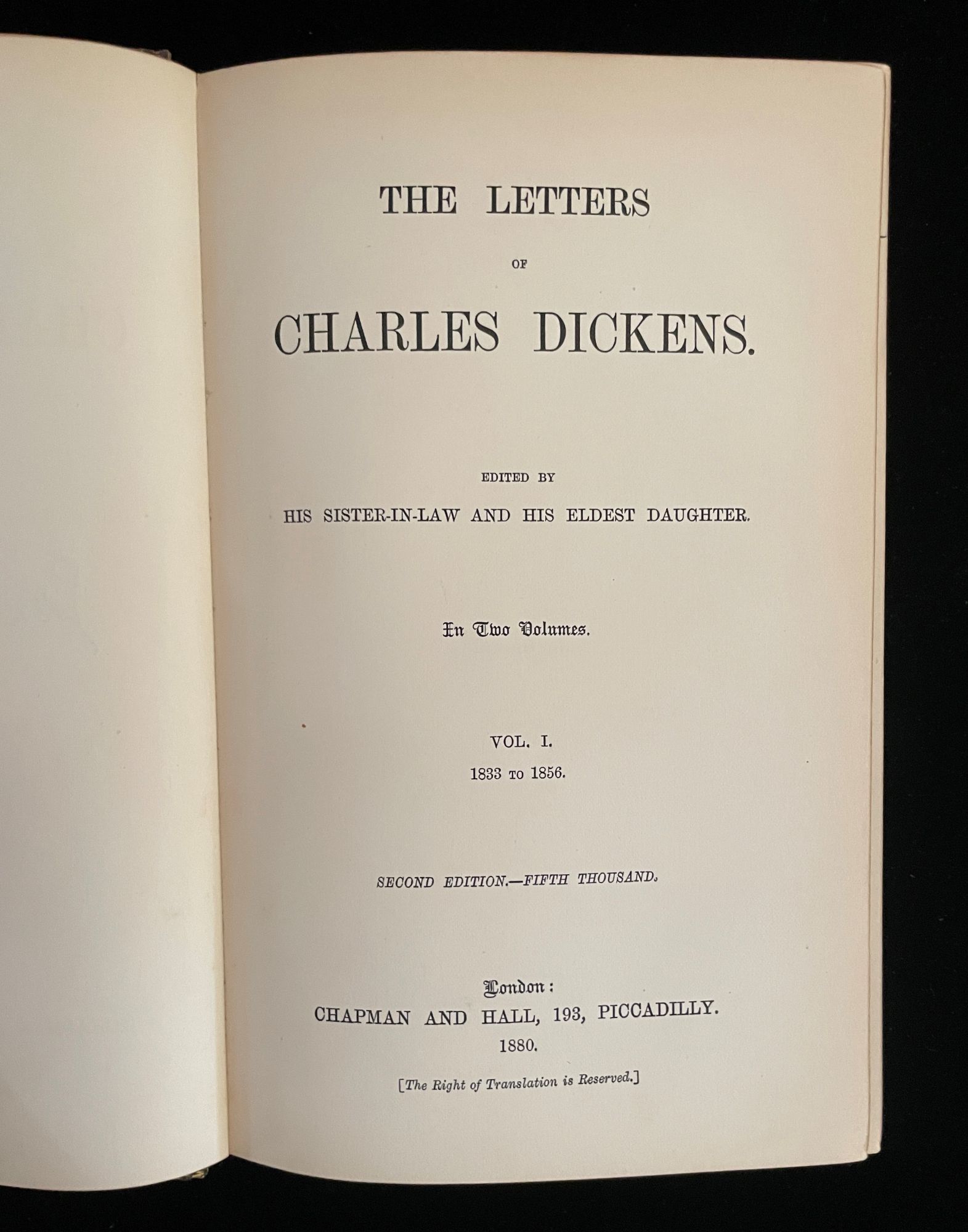 THE LETTERS OF CHARLES DICKENS EDITED BY HIS SISTER-IN-LAW AND HIS ELDEST DAUGHTER IN TWO VOLUMES
