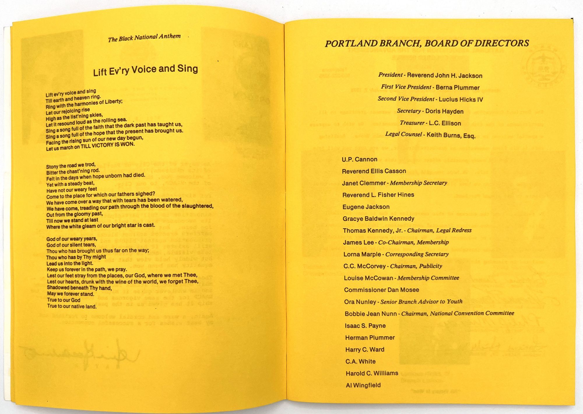 Single vol. (10.75" by 8"), pp. [56], illus., stapled in original illus. wrps. The Portland chapter of the NAACP was formed in 1914.