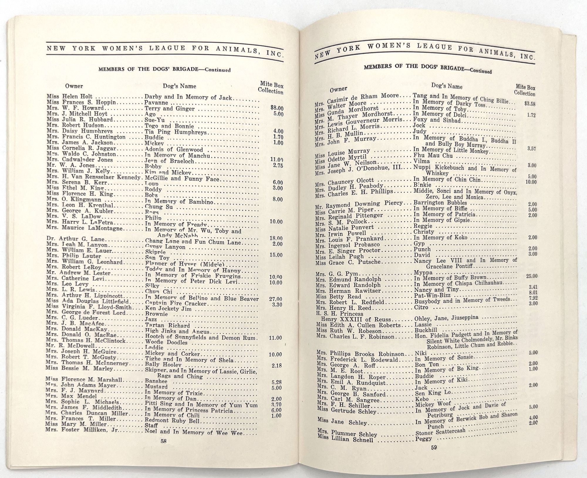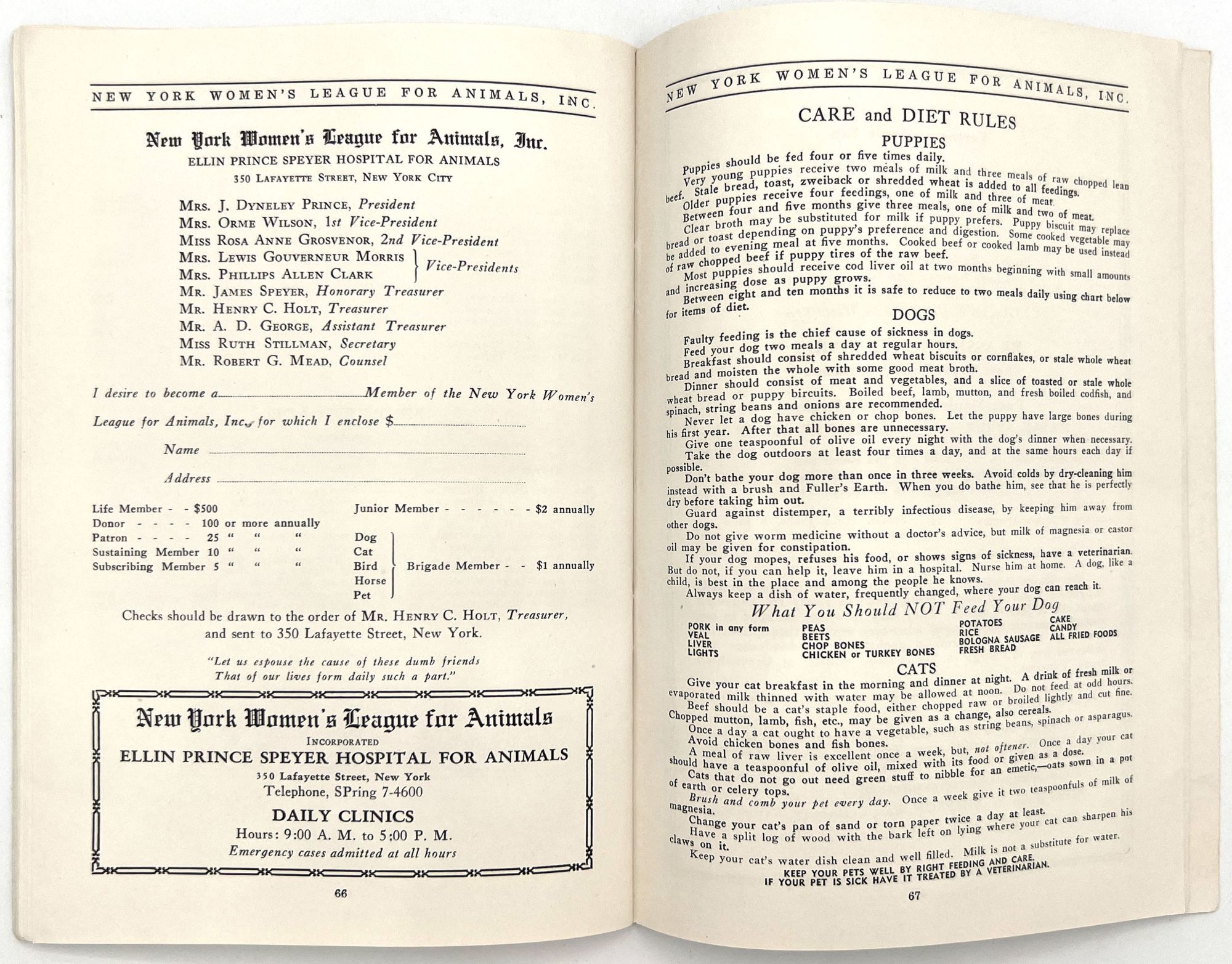 - New York, New York: New York Women's League for Animals, Inc, 1933