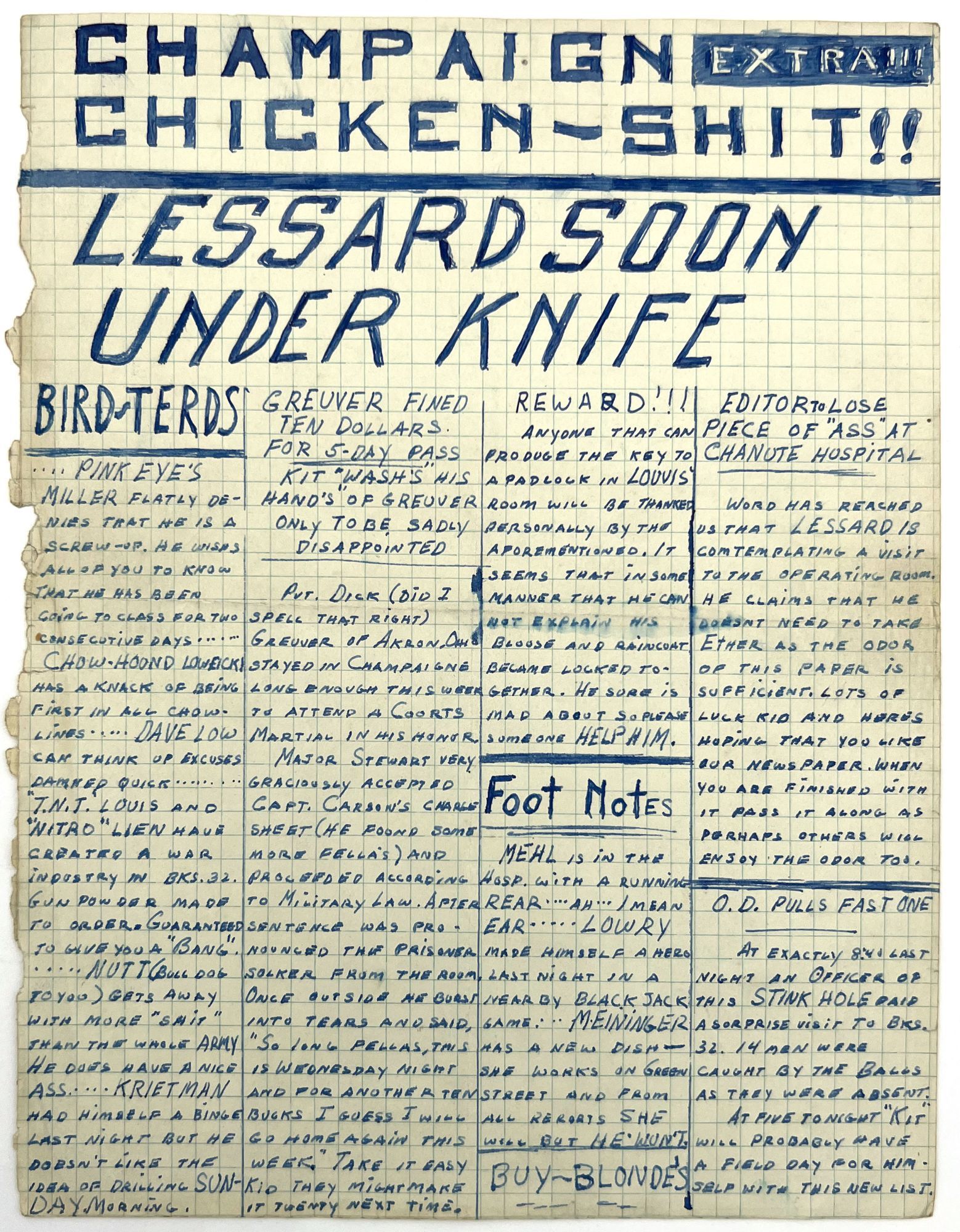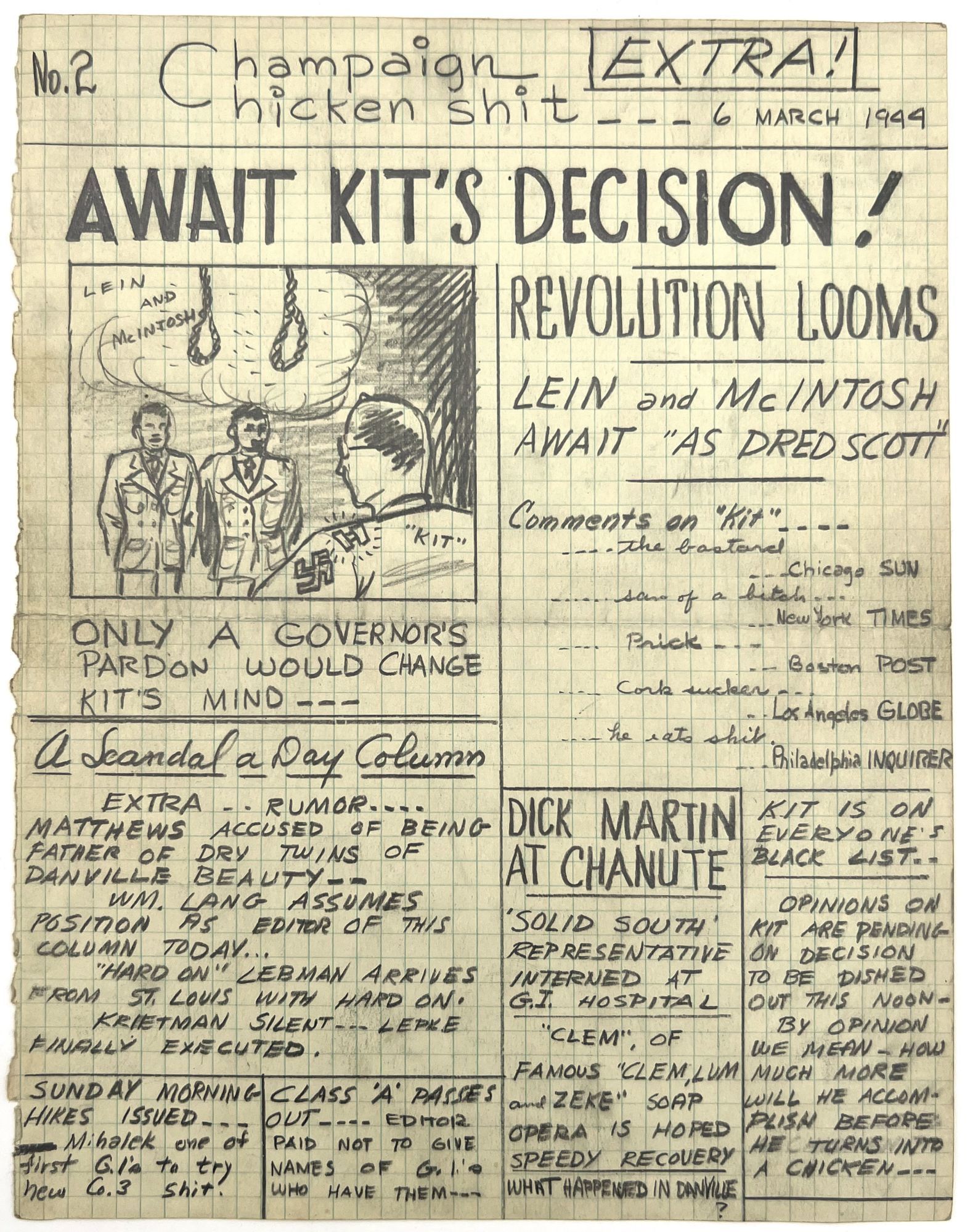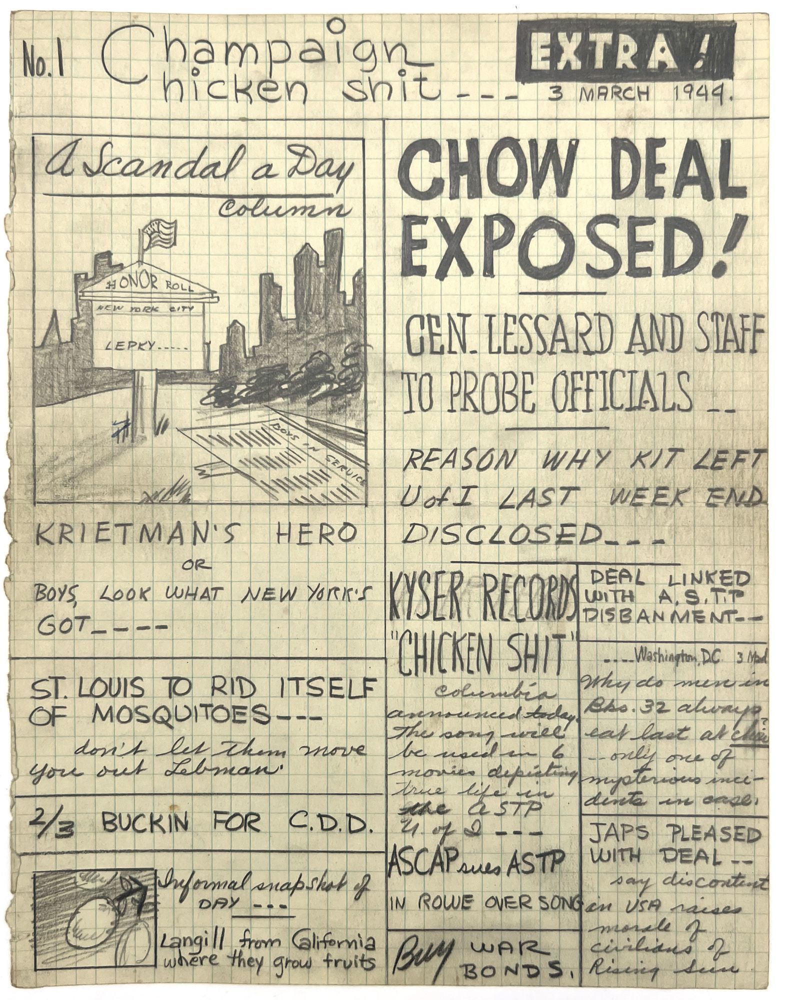 Champaign Chicken Shit" -- Unpublished, Unrecorded WWII-era Satirical Serial
