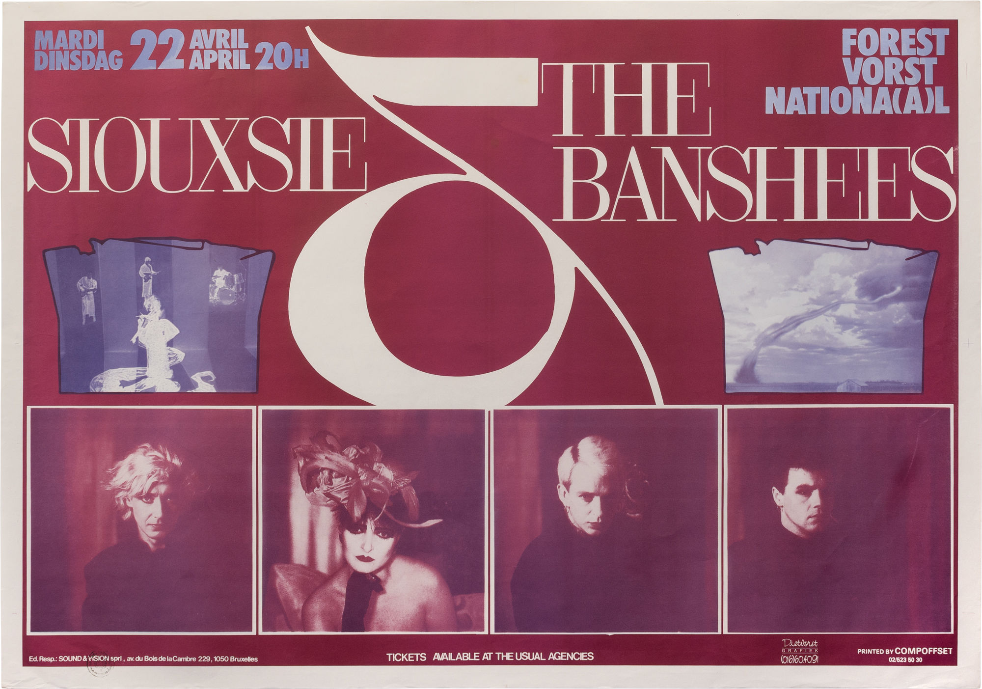 Original Belgian concert poster for a performance by Siouxsie and the Banshees at Forest National, Vorst, April 22, 1986