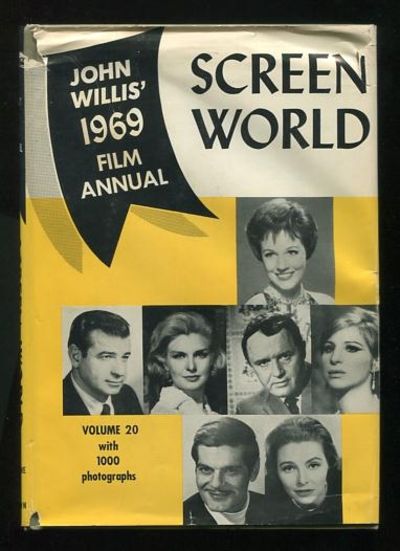 New York: Crown Publishers Inc.. Very Good+ in Good dj. (c.1969). (Volume 20). Hardcover. [good solid clean copy, light wear to lower extremities; the jacket is a bit on the tattered side, with various small tears and chips, paper loss at top of spine and outer corner of front panel, wrinkling at top of front panel]. (B&W photographs) Provides cast/production credits for all films released in the U.S. during 1968. Front panel illustrations of Julie Andrews (whose STAR! was one of the year's biggest bombs), Walter Matthau, Joanne Woodward, Rod Steinger, Barbra Streisand, Omar Sharif, and Patriia Neal. The year's "Promising Personalities" boasted a somewhat higher than usual percentage of actors who actually did fulfill their promise (or at least had significant careers), incluiding Jacqueline Bisset, Beau Bridges, Jim Brown, Genevieve Bujold, Mia Farrow, James Caan, Jon Voight, and Martin Sheen. The volume is dedicated not to a movie star of any variety, but to John Willis's sister Ilene. .