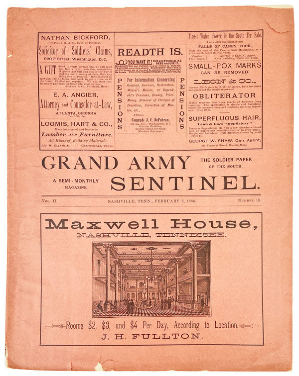 Grand Army Sentinel: The Soldier Paper of the South, A Semi-Monthly Magazine. Vol. II, Number 15. Nashville, Tenn., February 5, 1886