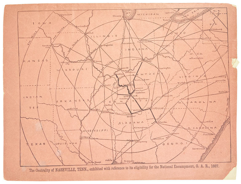 Scarce southern newspaper full of articles of course centering on the Civil War reminiscences and ongoing issue, including "The Confederate Women in the War of the Rebellion," and "The Confederacy Relics Hid Away in Washington." Several advertisements to wraps and illustrated map to rear wrap, "The Centrality of NASHVILLE, TENN., exhibited with reference to its eligibility for the National Encampment, G.A.R., 1887. No copies in retail and two holdings of any issue in OCLC as of June 2023.