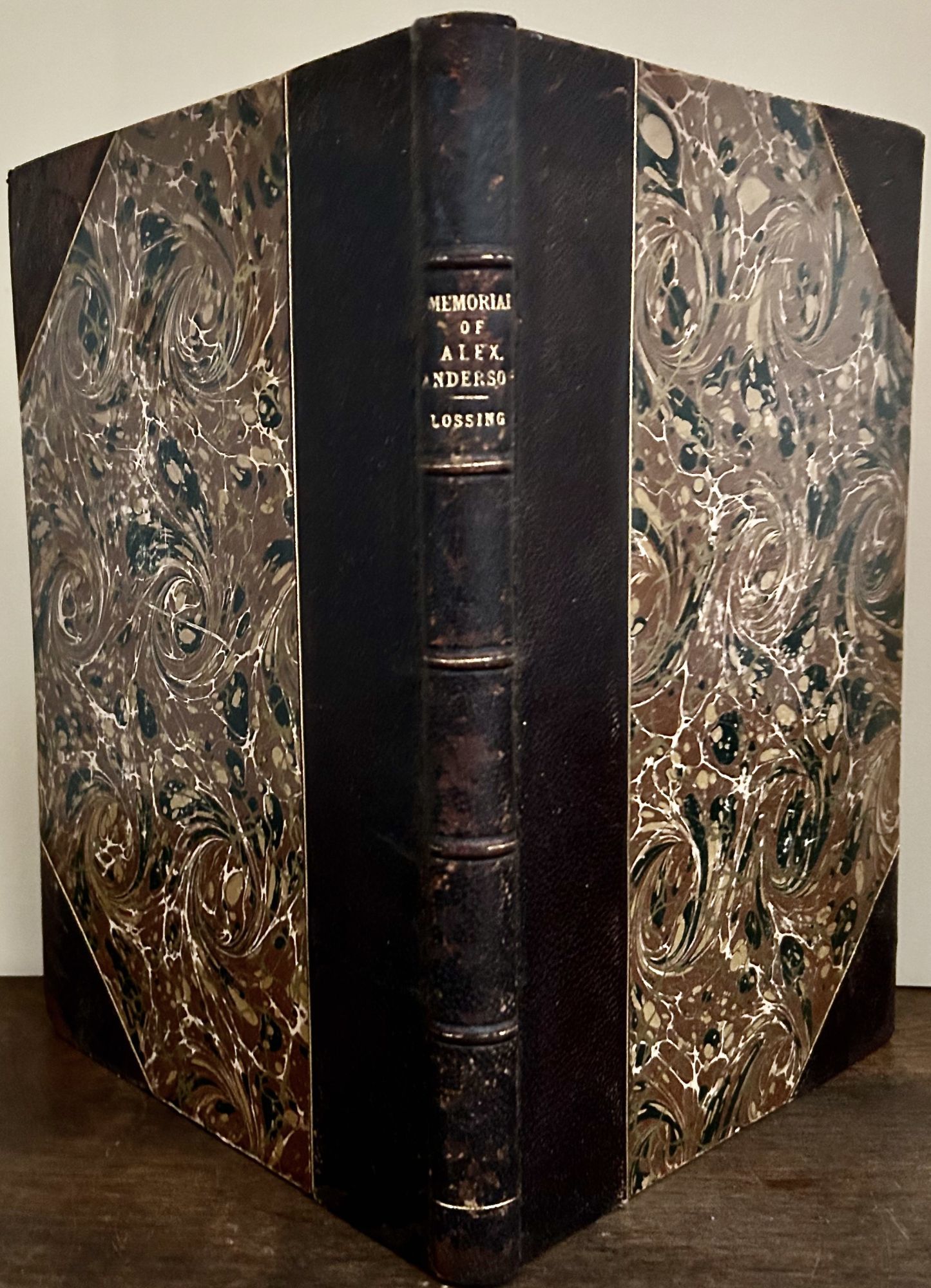 New York: Printed for the Subscribers, 1872. First edition. Hardcover. Contemporary three quarter brown morocco and marbled boards with matching endpapers. Teg. Near fine.. Anderson, John. 103 pages. 27 x 17 cm. Thirty-eight plates includes engraved frontispiece of Anderson. Index. Read before the New York Historical Society, Oct. 5, 1870. Bewick"s influence on Anderson was profound. KARPEL K771. "Preceded by a brief history of wood-engraving, the memoir provides a biographical sketch of Anderson......Always fascinated by pictures Anderson began engraving at the age of 12 and continued doing so even during his medical studies. Man of Anderson' earliest engravings are mentioned......Some of his pupils and contemporaries are discussed, and general observations on the business of book publishing are made. Appended to the memoir is Anderson's autobiography written in 1848." Ex-library with no cover marking. Signature of Dr. William Schroeder, Brooklyn NY dated 1904 and bookplate with his name presented to the Library of the Medical Society of the County of Kings. Verso of each plate with a small book label of Medical Society Library.