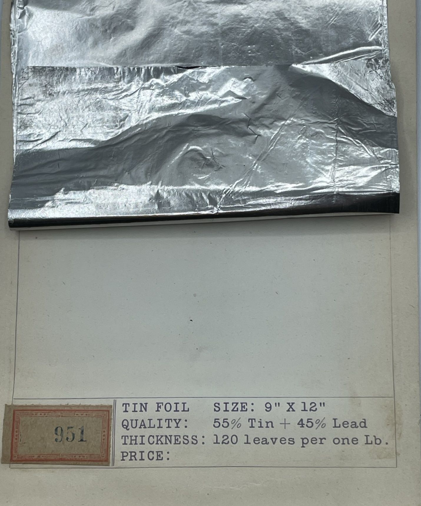 Includes eight (8) samples and eight (8) unused pages. Tin Foil was used mostly prior to the advent of aluminum foil.