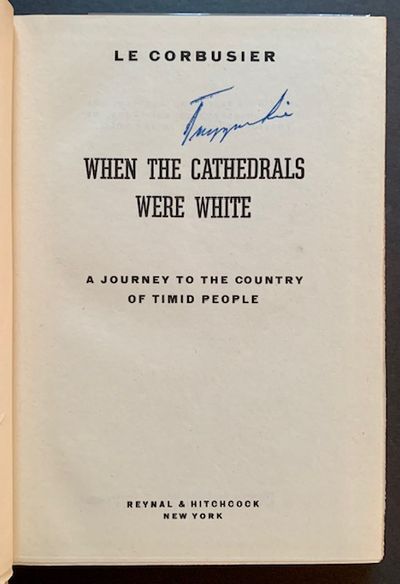 New York: Reynal & Hitchcock, 1947. Cloth. Near Fine/Very Good +. A terrific Association copy of the 1947 1st American edition: WARMLY INSCRIBED BY LE CORBUSIER TO TRYGVE LIE, THE VERY FIRST SECRETARY-GENERAL OF THE UNITED NATIONS (1946-1952), on the half-title. ALSO, ADDITIONALLY SIGNED BY TRYGVE LIE on the title page. A very solid copy to boot. Clean and Near Fine in a crisp, price-intact, VG+ dustjacket, with very light creasing along the spine ends. Crisp black-and-white photo of Le Corbusier at the rear panel by Barbara Morgan.