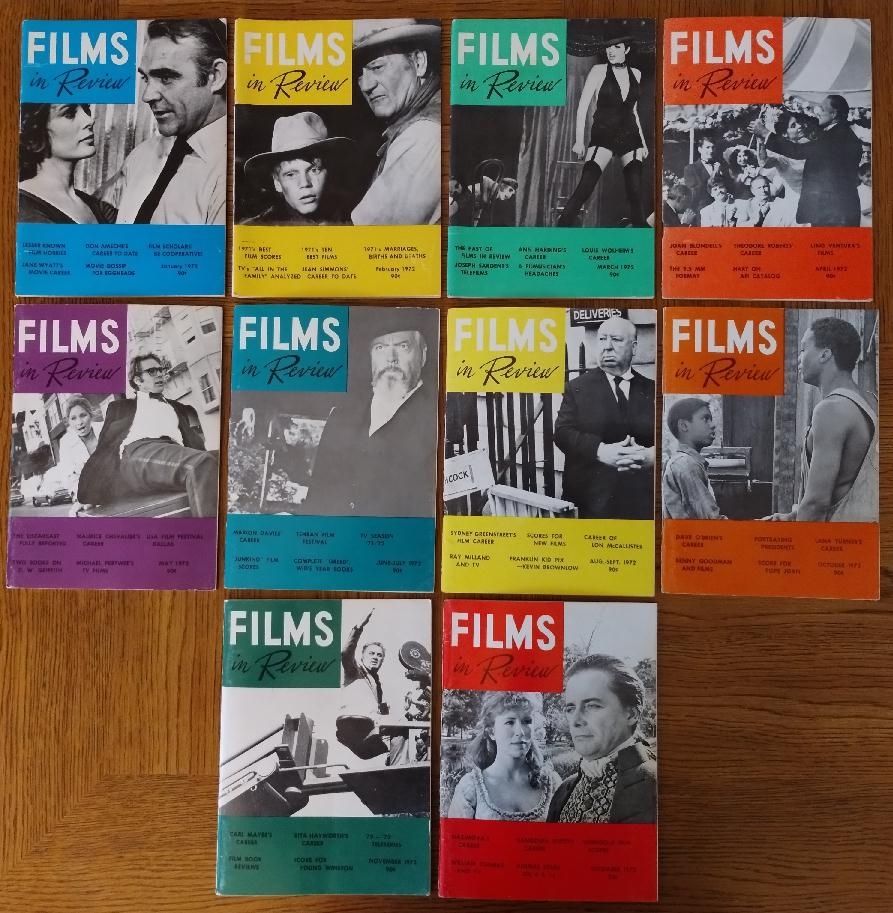 New York: National Board of Review. Very Good+. 1972. (Vol. XXIII, Nos. 1-10). Magazine. [all issues are VG+ or better (many close to Fine), with various bits of minor external wear; all issues are complete and internally clean]. (B&W photographs) A full year of issues of this erstwhile (and somewhat idosyncratic) film journal, most noted (and valued) by film buffs for its deeply-researched career articles (often corrected or supplemented by attentive readers in subsequent issues' Letters columns). This year's career-article subjects are: Don Ameche, Jane Wyatt, Jean Simmons, Ann Harding, Louis Wolheim, Joan Blondell, Theodore Roberts, Maurice Chevalier, Marion Davies, Sydney Greenstreet, Lon McCallister, Dave O'Brien, Lana Turner, Carl Mayer, Rita Hayworth, Nazimova, and Randolph Scott. (If any of these career articles interests you, see the NOTE at the end.) Most of the current film releases of the year are reviewed (often quite quirkily or crankily), and this was a pretty good year, which saw the release of A CLOCKWORK ORANGE (which editor Hart, predictably, hated), CABARET, THE GODFATHER, THE SORROW AND THE PITY, WHAT'S UP, DOC?, SLAUGHTERHOUSE-FIVE, FRENZY, JUNIOR BONNER, DELIVERANCE, FAT CITY, SOUNDER, and FELLNI'S ROMA. All these any many more are reviewed in the course of the year, and as a regular reader of this magazine during this period, I can testify that the regular critics, who were very much writing from an "old-school" perspective, could often be hilariously off the mark with regard to films that didn't line up with their sensibilities -- but at the same time, they were sometimes surprisingly pithy and perceptive. There were monthly columns devoted to films on TV, film music, and film collecting -- and of course the Letters section, a veritable hotbed of dedicated and knowledgeable readers sending in corrections, additions, arguments and additional perspectives (one regular sub-heading in the Letters column was "Erudition Wanted & Supplied." NOTE, please, that if you are interested in one particular career article or other individual feature story, but don't want to buy the whole set just to get it, please send us an inquiry; we are deeply stocked on this periodical, and may well be able to supply you with the individual issue you're seeking, at a modest price. .