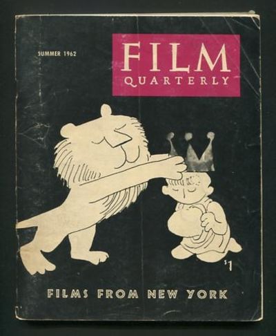 Berkeley: University of California Press. Good. 1962. (Vol. XV, No. 4). Magazine. [worn copy, with various creases/bends in covers, slight overall ripple to magazine]. (B&W photographs) Highlights of this issue: an interview with Harold Lloyd; a long article by Pauline Kael, consisting of "remarks on movie critics and some recent movies," most notably Jack Clayton's THE INNOCENTS, but also taking in A VIEW FROM THE BRIDGE and WEST SIDE STORY (which is also reviewed separately in this issue by Albert Johnson), among others; a rundown on "Films of the Quarter," with contributions by Kael, Stanley Kauffmann, Gavin Lambert, Dwight Macdonald, and Jonas Mekas; a section of reviews of "New York films," which includes both "pro" and a "con" reviews of Shirley Clarke's THE CONNECTION and a review of Jonas Mekas's GUNS OF THE TREES. .
