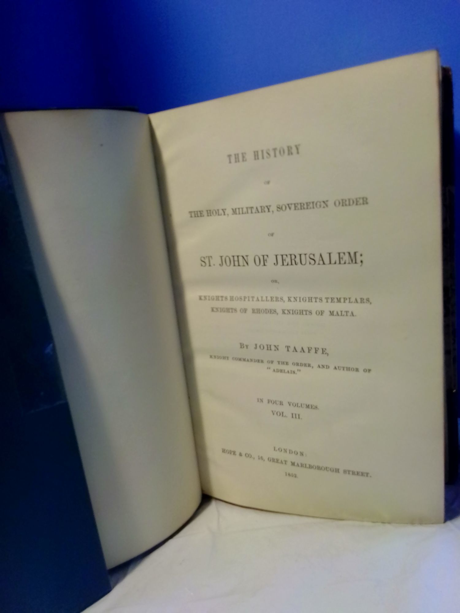 The History of the Holy, Military, Sovereign Order of St. John of Jerusalem; or, Knights Hospitallers, Knights Templars, Knights of Rhodes, Knights of Malta (4 Volumes in 2 Bound Books)