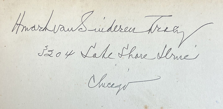 Chicago: A.T. Andreas, Publisher, 1884. First Edition. Hardcover. Very Good. Complete in three volumes. Very Good. Rebound with a half-leather binding, rubbed at the edges, joints, and corners. Front hinge of Vol. I cracked, otherwise square and firmly bound with gilt top edges, former owner's name and address on the front endpapers, clean otherwise. Andreas's wide-ranging history of the city, a collection of facts, andectodes, biographical sketches, and maps. According to an article from the Chicago Public Library, "It is almost impossible to discuss Chicago history without mentioning A.T. Andreas' 1884 History of Chicago." This copy belonged to Howard Van Sinderen Tracy, former president of Chicago's Citizens Association. In this role, he successfully lobbied for new street signs in the city and successfully fought against a campaign to comercialize the lake front. He also helped found what would become the Better Business Bureau and served as the director of the Chicago Crime Commission.