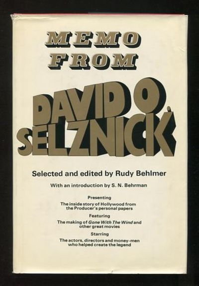 London: Macmillan. Near Fine in Near Fine dj. 1973 (c.1972). 1st UK edition. Hardcover. [nice clean copy, just slightly bumped at the top of the spine but otherwise unblemished; the jacket is very lightly rubbed, with some minor wrinkling at the spine ends and an infinitesimal closed tear at the bottom of the front panel; it was also slightly mis-folded onto the book at the front foldover, with a resulting vertical wrinkle/crease along the left edge of the front flap]. (B&W photographs) An endlessly fascinating read-through of the correspondence files of the legendary producer of GONE WITH THE WIND and other classics (and an occasional non-classic) -- albeit, as editor Behlmer explains in his foreword, presenting "a rather one-sided case, with no opportunity for the several victims of Selznick's unhappiness or, in some instances, wrath, to offer rebuttals or countercharges." The selection of memos -- from among two thousand file boxes of Selznick's papers -- was a monumental task, and although it was by necessity a highly selective process, at the end you feel like you've gotten a pretty comprehensive picture of DOS -- "at times pontificating and overly fussy," as the editor allows, but "also brilliant, knowledgeable, tasteful, painstaking, and possessed by what he was doing." The book itself was something of a landmark of cinema scholarship: never before had a book of film history (or biography) been presented as an assemblage of primary documents, and it's not saying too much to state that it raised the bar for future film historians' excavation of such archives. Quite fittingly included in the important bibliography "100 Books on Hollywood & the Movies." ****NOTE that additonal postage charges will be assessed for international shipping of this heavy book (which is a little bit heftier, in fact, than the original American edition); if this concerns you, please contact us for a shipping quote before placing your order.**** (xx) .