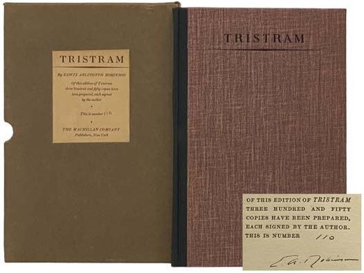 New York: The Macmillan Company, 1927. Limited Edition. Hard Cover. Near Fine/Very Good. 7x5x0. Signed by author. Limited edition, #110 of 350 copies. Hand-numbered on slipcase and colophon and signed by author on colophon. Minor wear to slipcase corners, otherwise an excellent copy. 1927 Hard Cover. 210 pp. Robinson won the Pulitzer Prize for Poetry three times, and was nominated for the Nobel Prize in Literature four times.