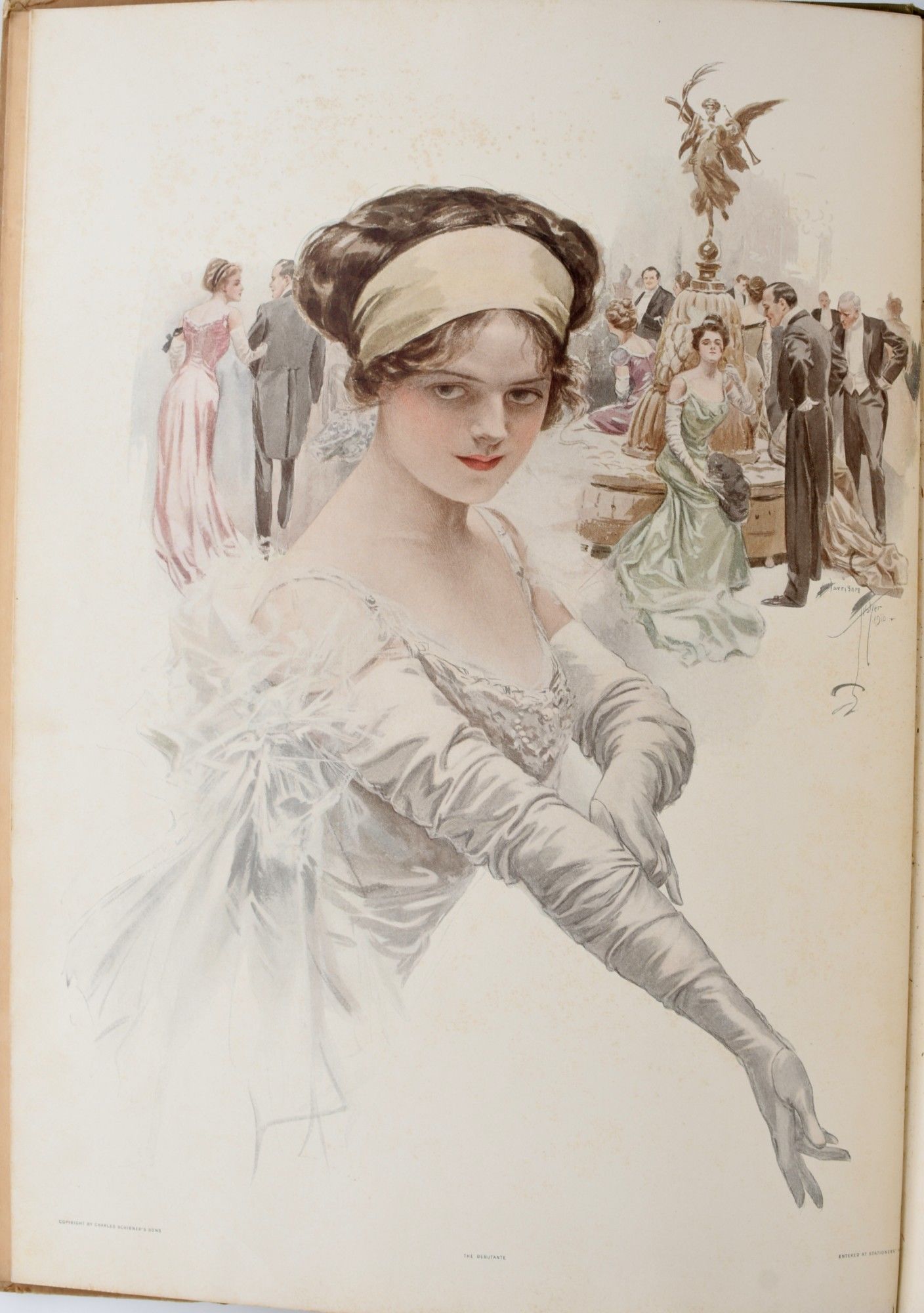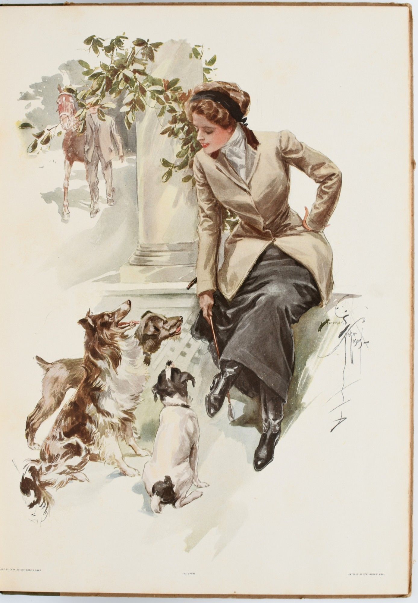 New York: Charles Scribner's Sons, 1910. First Edition. Hard Cover. Very Good binding. Folio; in paper-covered pictorial boards backed in olive cloth; with 3 preliminary leaves, and 16 color plates including the frontispieces, and a black and white photographic portrait of Mr. Fisher; there is some modest toning; and the boards show modest wear; there are no ownership marks in the book.~~A nice example of Harrison Fisher's portrayal of the "ideal woman" in the early 20th century. Very Good binding.