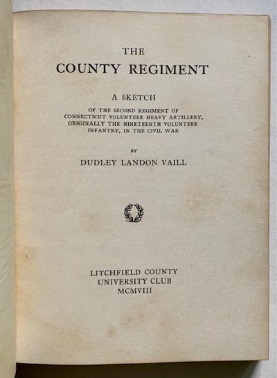 Litchfield County, CT: University Club, 1908. Full leather. Very Good. The 1908 1st edition. Solid and VG in its dark-green pebbled leather, with bright gilt-titling and insignia at the front panel. Light scuffing to the panels, light wear at the spine crown. 13 illustrations --including the frontispiece-- complementing Dudley Landon Vaill's text.