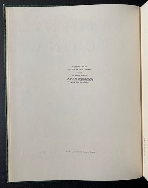 New York: The Ronald Press Company, 1949. Cloth. Near Fine. A handsome copy of the 1949 1st edition. Tight and VG+ to Near Fine in its dark-green cloth, with bright gilt-titling along the front panel and spine. Tasteful former owner bookplate at the front pastedown, otherwise clean as could be. And in a bright, VG example of the publisher's printed light-green slipcase (and chemise), with mild wear at the spine crown and along the bottom-edges. Tall quarto, first-rate plates throughout, many of them in rich gravure.