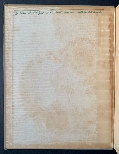 New York: Random House, 1940. Cloth. Very Good -. A nice Association copy. INSCRIBED BY NORMAN BEL GEDDES TO AUTHOR BRUCE BARTON ("The Man Nobody Knows", 1925) on the front pastedown. A perfectly serviceable copy to boot of the 1940 stated 1st printing. Crisp and VG- in its beige cloth, with pronounced offsetting along the inner hinges and the pastedowns, and some abrading as well to the rear pastedown. Lacking its dustjacket. Still though, a bright copy of this important 1940 treatise on "futuristic" design.