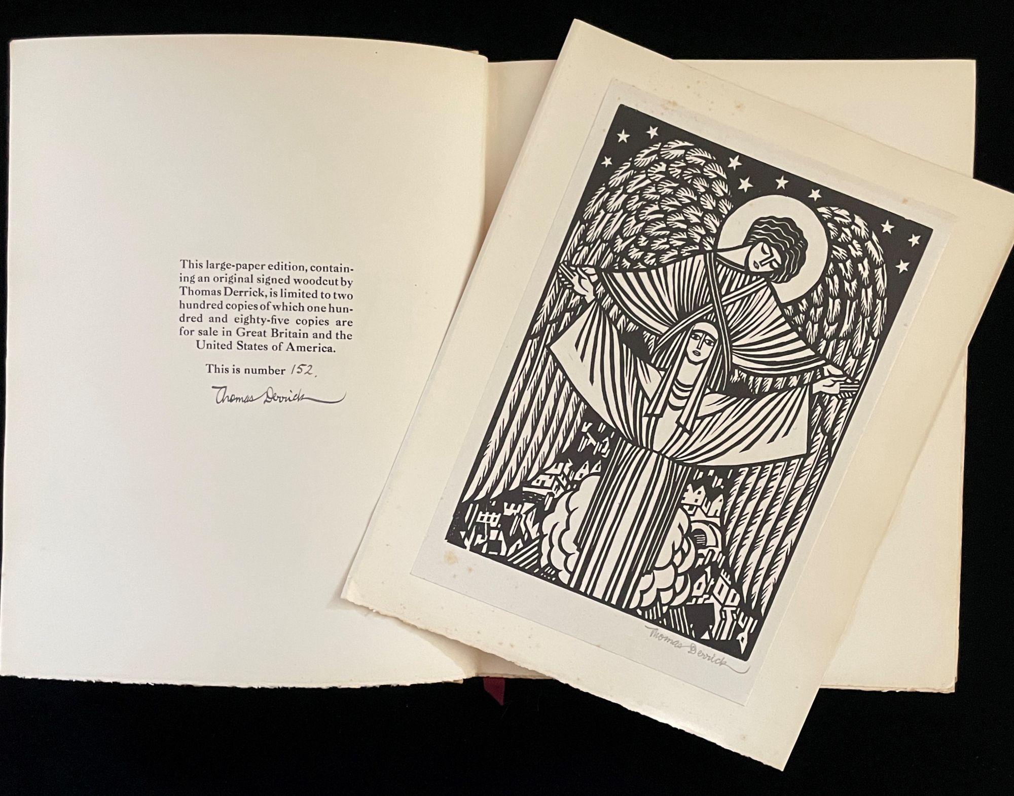 London: Westminster Press, 1930. 1st Edition Limited. Hardcover. Near Fine. The large paper edition, 185 copies, this #152 and signed by woodcut artist Derrick on the limitation page, with a signed woodcut print laid-in. Faux vellum, gilt titles front and spine, gte, ribbon-marker, 4to, sides untriimmed, 100p. The text, edited by Rhys, is "Everyman's Library". Printed at the Westminster Press, bound at the Temple Press. Covers a wee spotted, else fine. A striking production. Owner bookplate of Alan K. Dolliver on pastdown.
