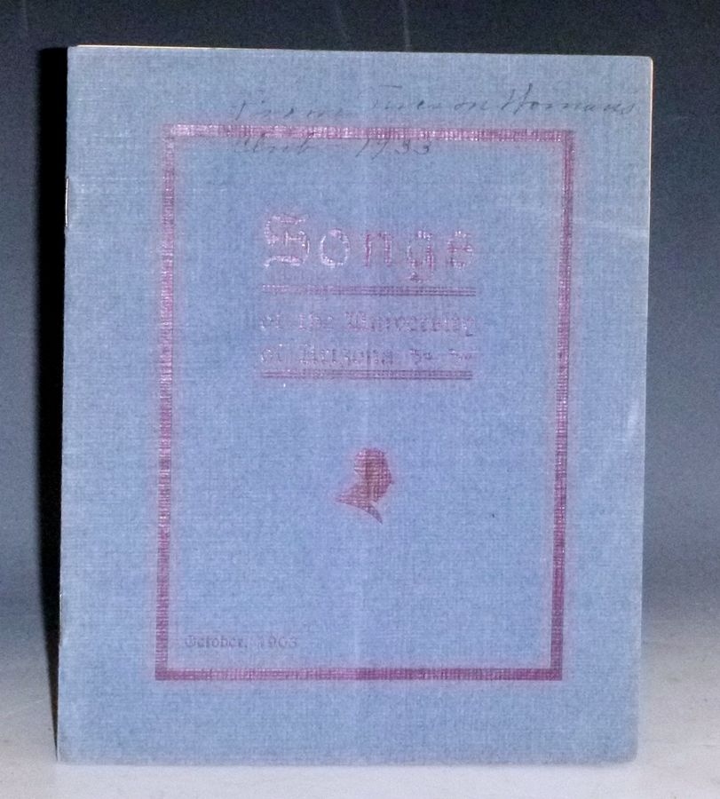 Tucson, Arizona: University of Arizona, 1903. approx. 5 1/2" x 6 1/2" [12] pages. Here are the words of the songs which were sung by the students in the 18th year of its early history. It was in 1903 that they issued the first yearbook. Very scarce. OCLC shows a copy at the University of Arizona Special Collections and at the Arizona State Archives. Bound in blue paper wraps lettered and decorated in maroon, small closed edge tear to upper margin of third leaf not extending to text. A very nice copy with previous owner's name to upper wrap and light crease through center.