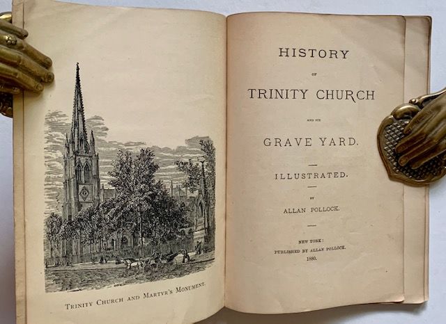 New York: Self-published, 1880. Cloth. Very Good. The uncommon 1880 1st edition of the history of Trinity Church of New York, originally self-published by the author Allan Pollock. Solid and VG in its light-brown flexi-cloth, with bright gilt-titling along the spine. A bit of light, inoffensive offsetting at the edges, otherwiser very clean. And internally, no writing or markings to speak of. 16mo (pocket-sized), wonderful local, New York-centric ads at the rear.