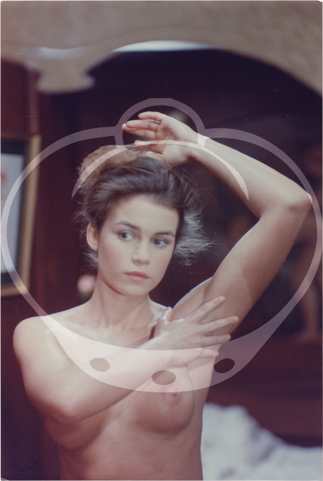 N.p.: N.p., 1981. Three vintage color reference photographs from the 1981 French film, all showing actress Valérie Kaprisky in various states of undress. One borderless, two with borders.