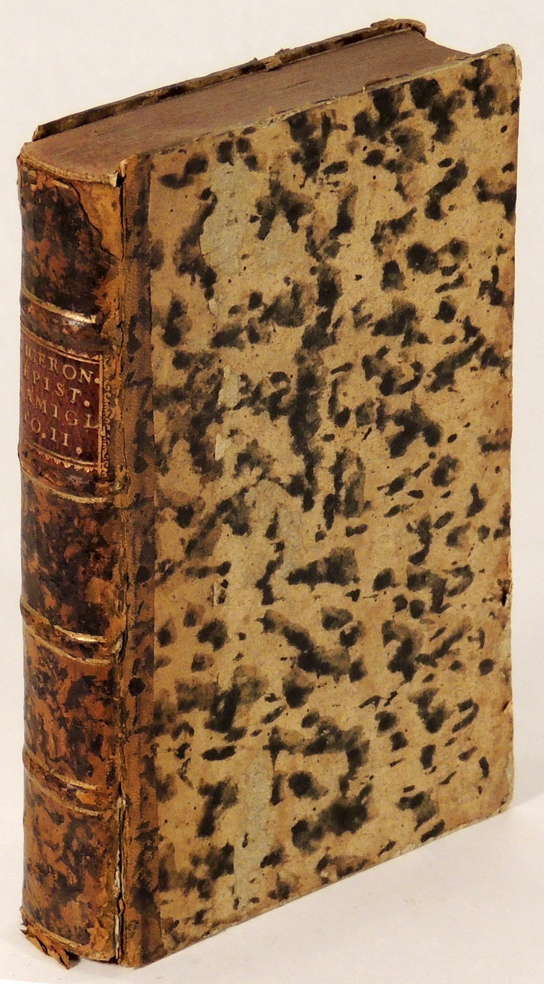 Venezia [Venice]: Per Francesco Piacentini con Licenza de' Superiori, 1736. Hardcover. Very Good. Hardcover. Volume II only. A new edition of the Italian translation of Cicero's historically important work "Epistulae ad familiares" which collects Cicero's letters to various people during the Roman Republic. Cicero (106 - 43 BC) was one of Rome's greatest orators. In Italian. Bound in mottled paper covered boards over mottled leather spine with maroon and gilt title label to spine. Chipping and rubbing to paper on front board and to edges of boards. Cracking to leather on spine, short splits to leather along front joint, and chips to spine ends. Spots of foxing to interior, else clean. Ex-library embossed stamp from Napoli to front free endpaper. Red speckles to fore-edge of textblock. Pagination: 331 - 792. REL/071923.