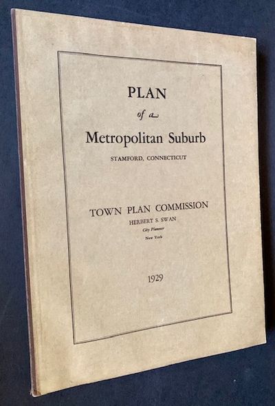 Town Plan Commission, Stamford, CT, 1929. Printed wrappers. Near Fine. A solid, very presentable copy of the 1929 report issued by the Stamford, CT Town Planning Commission and overseen by New York's eminent City Planner Herbert S. Swan. Clean and Near Fine in its printed beige wrappers. Quarto, over 20 photos and diagrams complementing the text and 2 additional fold-out maps ("Plan and Profile -- Broad Street Extension" and "Comprehensive Plan of Development").