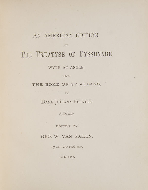 An American edition of The Treatyse of Fysshynge wyth An Angle, from The Boke of St. Albans by Dame Juliana Berners, A.D. 1496 ... Edited by Geo. W. Van Siclen