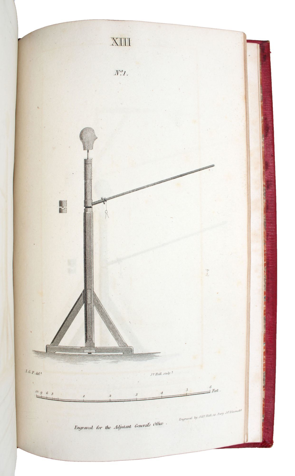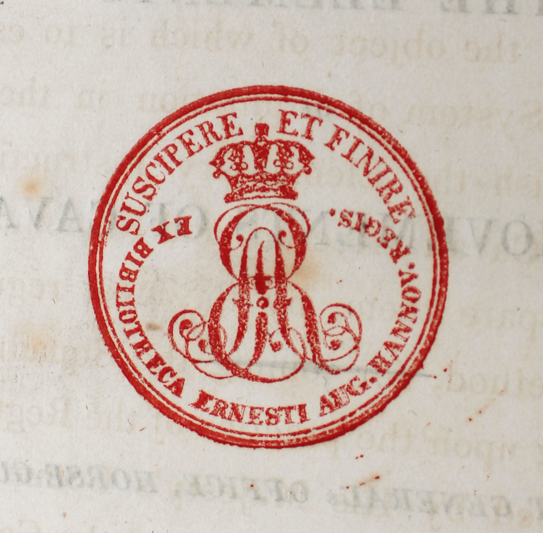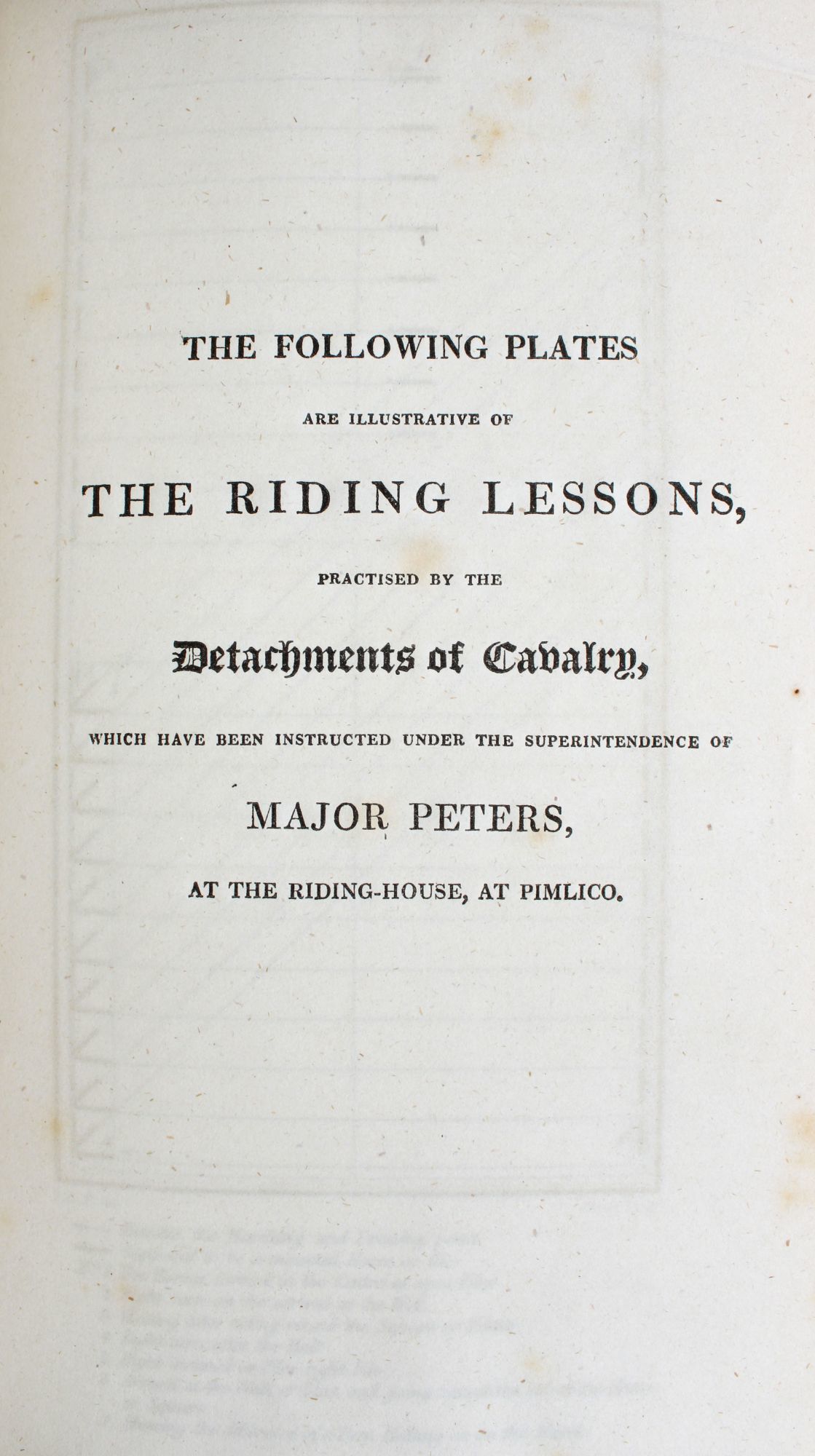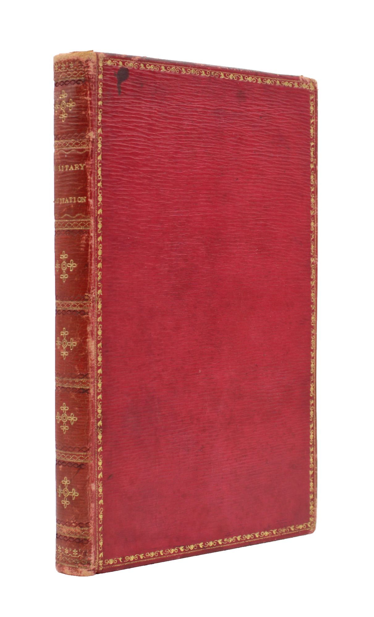 London: William Clowes, 1820. 20 plates following text. vii, [i], 155, [1, imprint] pp., [2] ff. [sectional title, verso blank; explanatory text, verso blank]. 1 vols. 8vo. Full red straight-grained morocco gilt, a.e.g. Library stamp of Ernest August, King of Hanover on title page verso; another royal stamp on title margin. A fine copy of a handsome book. 20 plates following text. vii, [i], 155, [1, imprint] pp., [2] ff. [sectional title, verso blank; explanatory text, verso blank]. 1 vols. 8vo. Ernest August (1771-1851), fifth son of Gorge III and the younger brother of British King William IV, ascended to the Hanoverian throne in 1837; his niece was Queen Victoria, who could not inherit in Hanover under Salic law. In the French Revolution, he had served with distinction in the cavalry; hence his continued interest in miitary equitation. Huth, p. 91