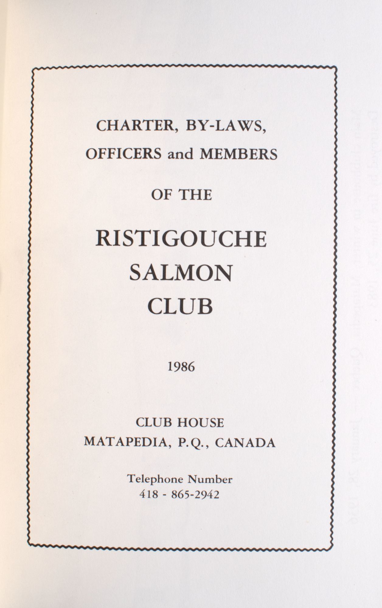 Charter, By-Laws, Officers and Members of the Ristigouche Salmon Club