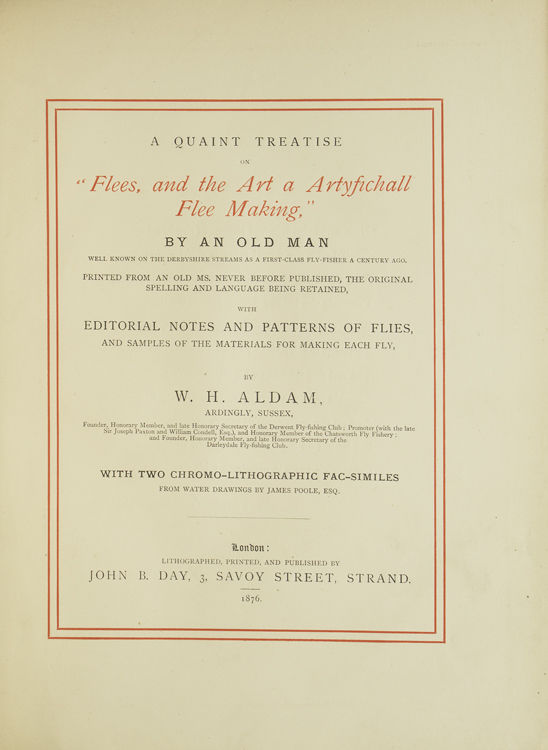 A Quaint Treatise on “Flees, and the Art a Artyfichall Flee Making” By An Old Man … with editorial notes … by W.H. Aldam