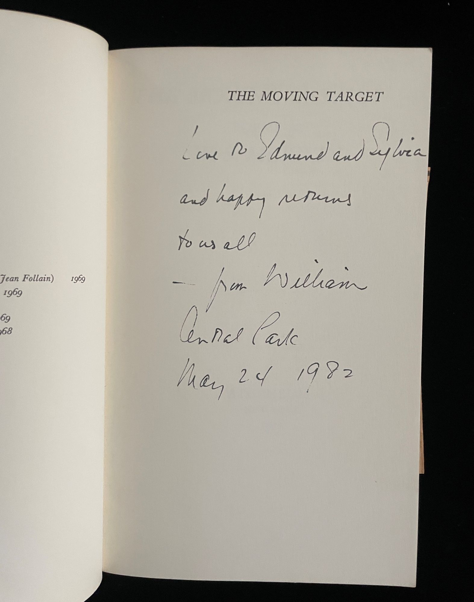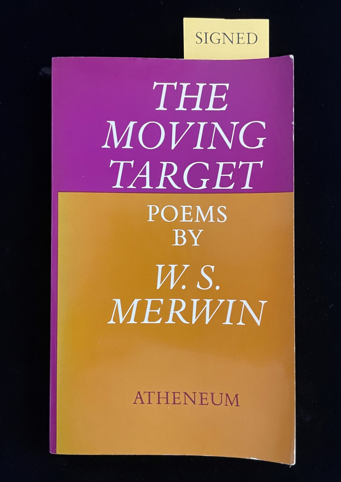 NY: Atheneum, 1971. 1st Edition. Soft cover. Near Fine. Fifth printing, trade paperback edition. Presentation copy from WS Merwin (1927-2019), Pulitzer Prize for poetry (1971 and 2009), to author Edmund Morris (1940 - 2019), Pulitzer Prize for NonFiction, "The Rise of Theodore Roosevelt" (1979). Inscribed on the half title to Morris and his wife, author Sylvia Jukes Morris (1935 - 2020): "Love to Edmund and Sylvia/ and happy returns/ for us all/ - from William/ Central Park/ May 24, 1982". The "happy returns" refers to the book being a presentation gift on the occasion of Morris' 42nd birthday, having been born on the same date in 1940. Slight curl to the edge of the front cover. Newspaper clippings collected by Morris laid-in at the rear with some attendant offsetting to rear verso endaper and inside rear cover.