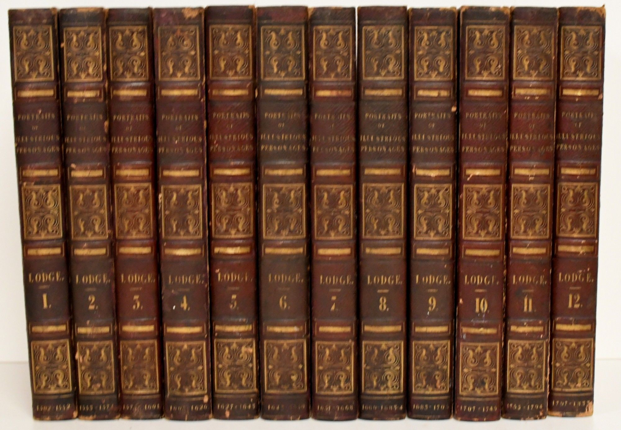[ENGLAND] [BINDINGS] PORTRAITS OF ILLUSTRIOUS PERSONAGES OF GREAT BRITAIN. ENGRAVED FROM AUTHENTIC PICTURES IN THE GALLERIES OF THE NOBILITY AND THE PUBLIC COLLECTIONS OF THE COUNTRY. WITH BIOGRAPHICAL AND HISTORICAL MEMOIRS OF THEIR LIVES AND ACTIONS. [12 VOLUMES; COMPLETE SET]