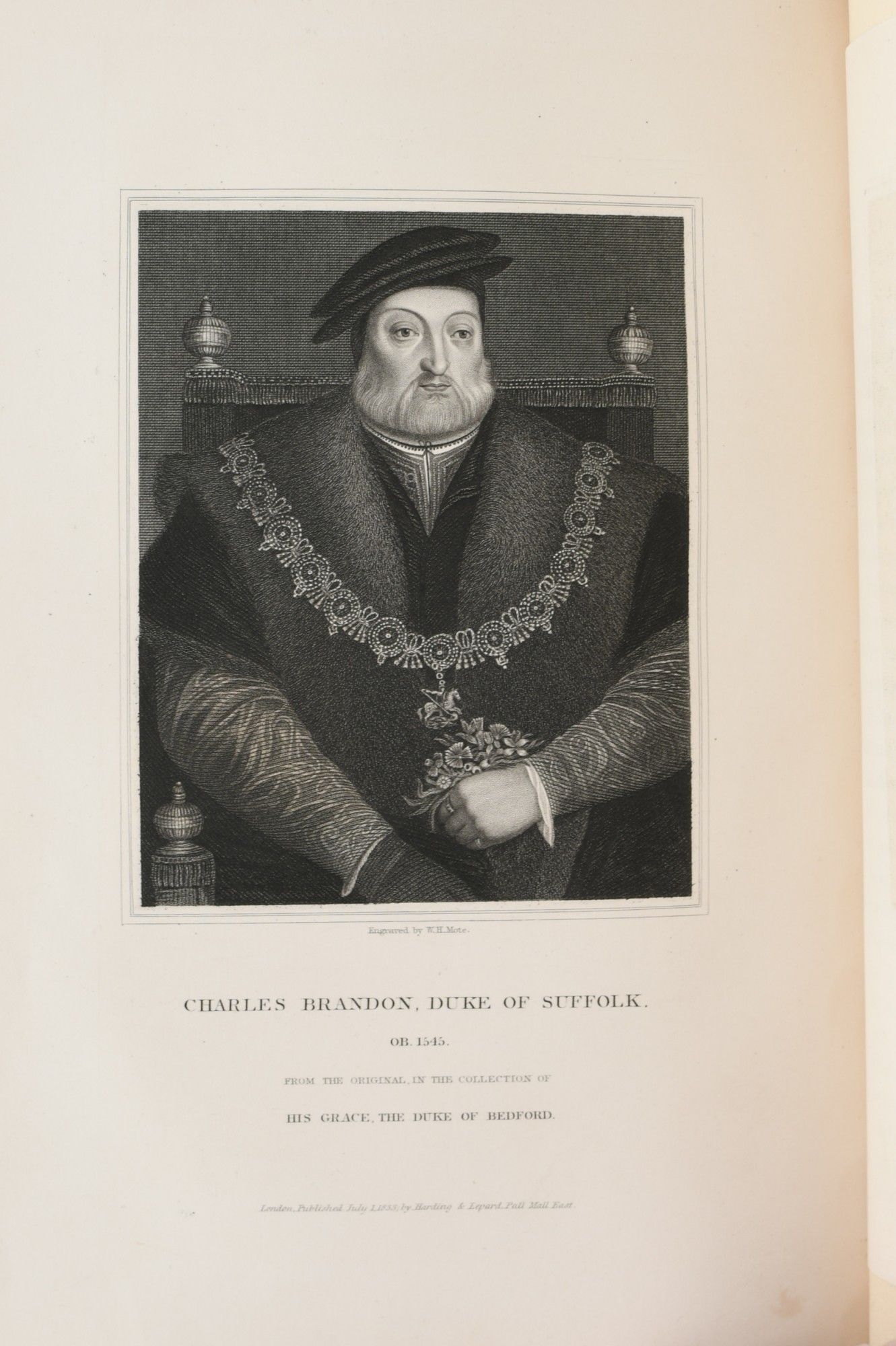 London: Harding and Lepard, 1835. Half Leather. Very Good binding. Twelve quarto volumes; half-leather in burgundy over tan buckram, with gilt spines and flat raised bands; the gutters are rubbed but all are holding well; there are no ownership marks of any kind in any of the books; the plates haves some light and scattered foxing; with two hundred and forty portraits protected with tissue guards. Very Good binding.