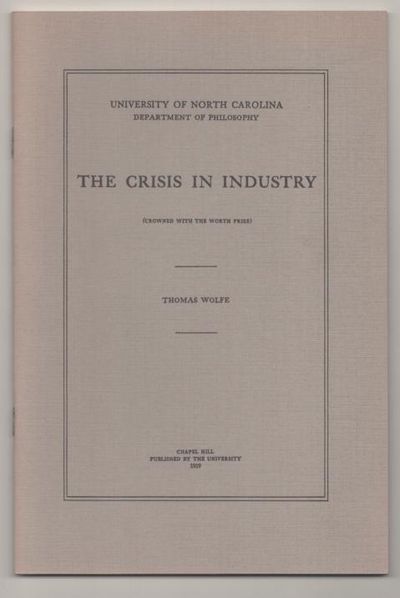Chapel Hill, NC: Chapel Hill University / Palaemon Press, 1978. First edition thus. Softcover. Number 44 from an edition of 200 copies. A facsimile of Wolfe's first book. Wolfe went on to write classics like "Look Homeward, Angel" and "Of Tiem and the River." A fine copy in stapled wrappers.