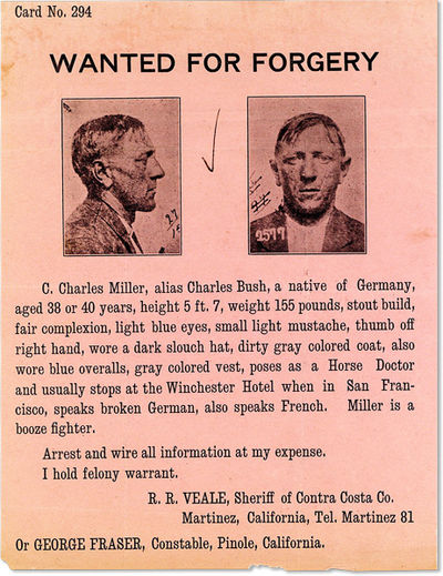Wanted Flyer - "Wanted for Forgery - C. Charles Miller, alias Charles Bush....