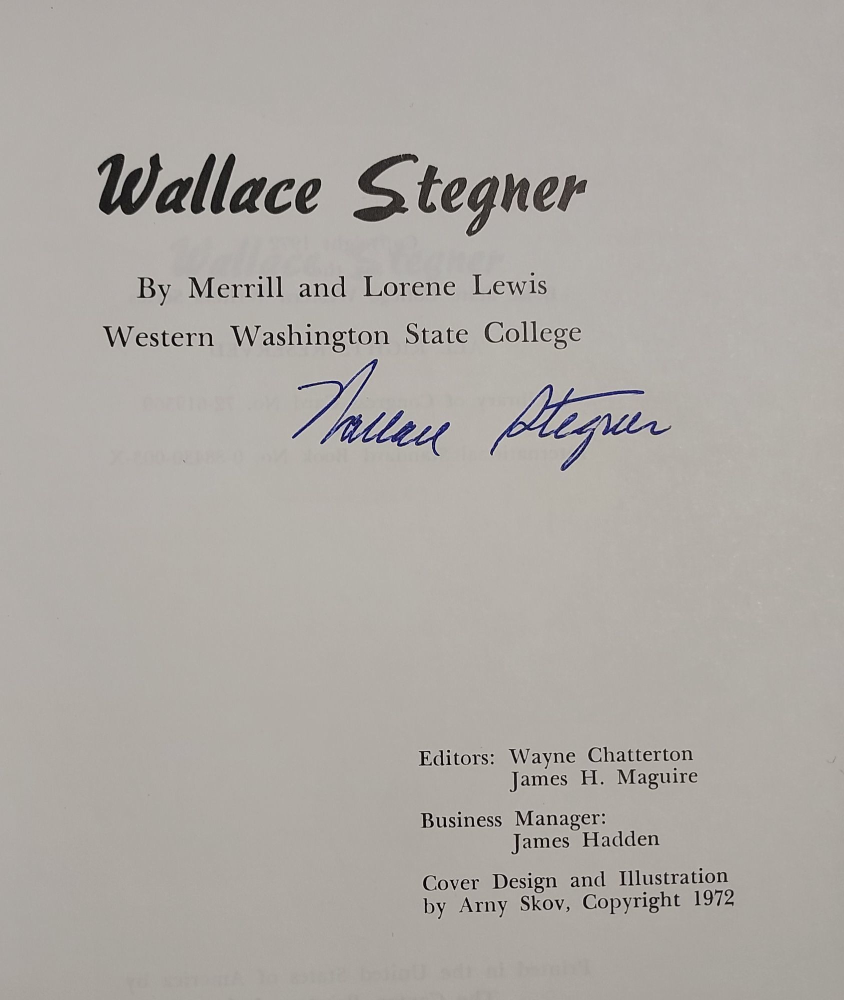 Boise, Idaho: Boise State College, 1972. First edition. Paperback. Fine. 48 pp. Very slim octavo [20 cm] Saddle-stitched illustrated wraps. Signed by Wallace Stegner on the title page. An analysis of Stegner and his works.