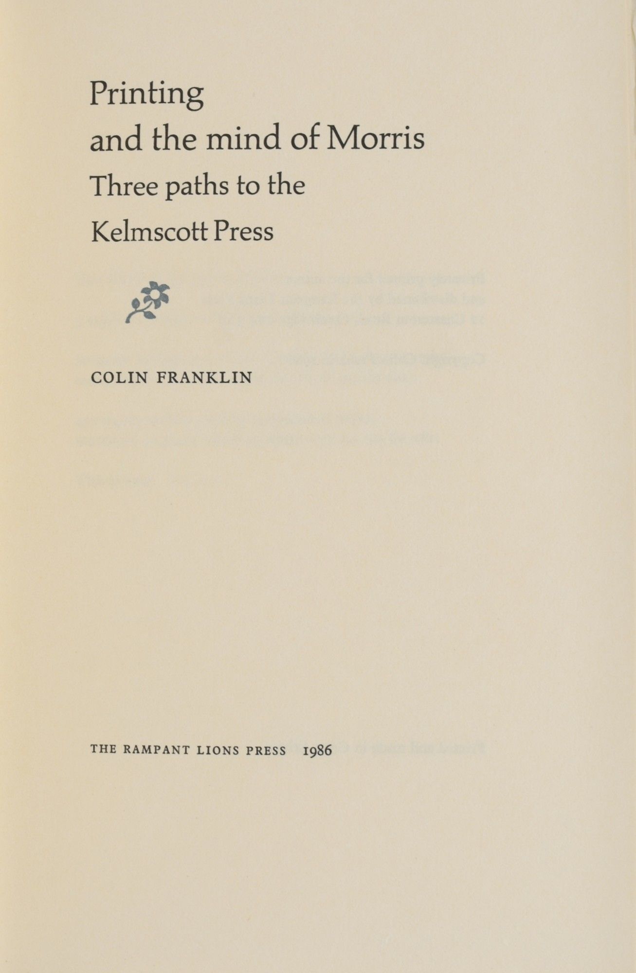 [SPECIAL PRESS] PRINTING AND THE MIND OF MORRIS: THREE PATHS TO THE KELMSCOTT PRESS
