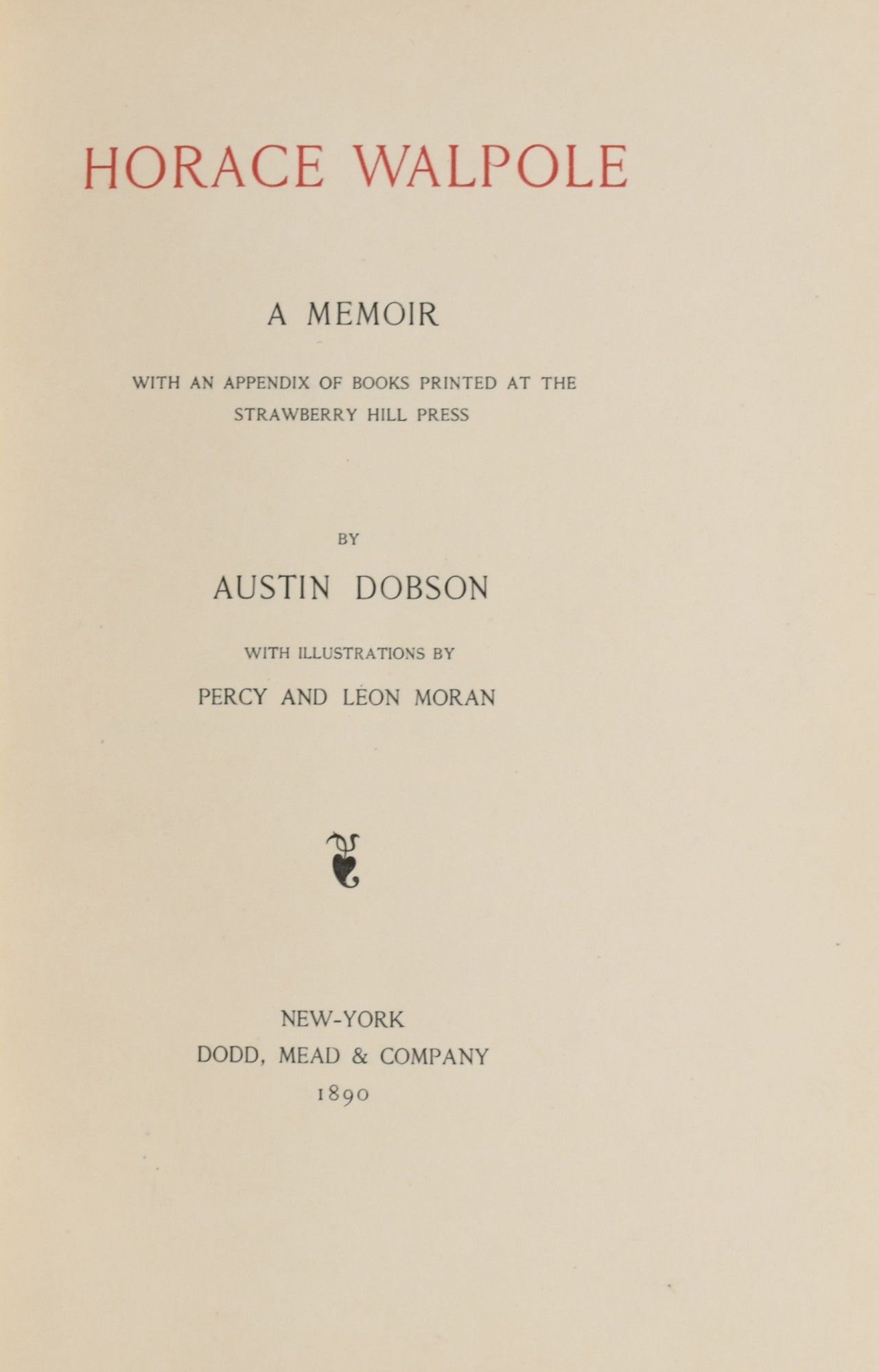 [JAPAN PAPER] HORACE WALPOLE. A MEMOIR WITH AN APPENDIX OF BOOKS PRINTED AT THE STRAWBERRY HILL PRESS