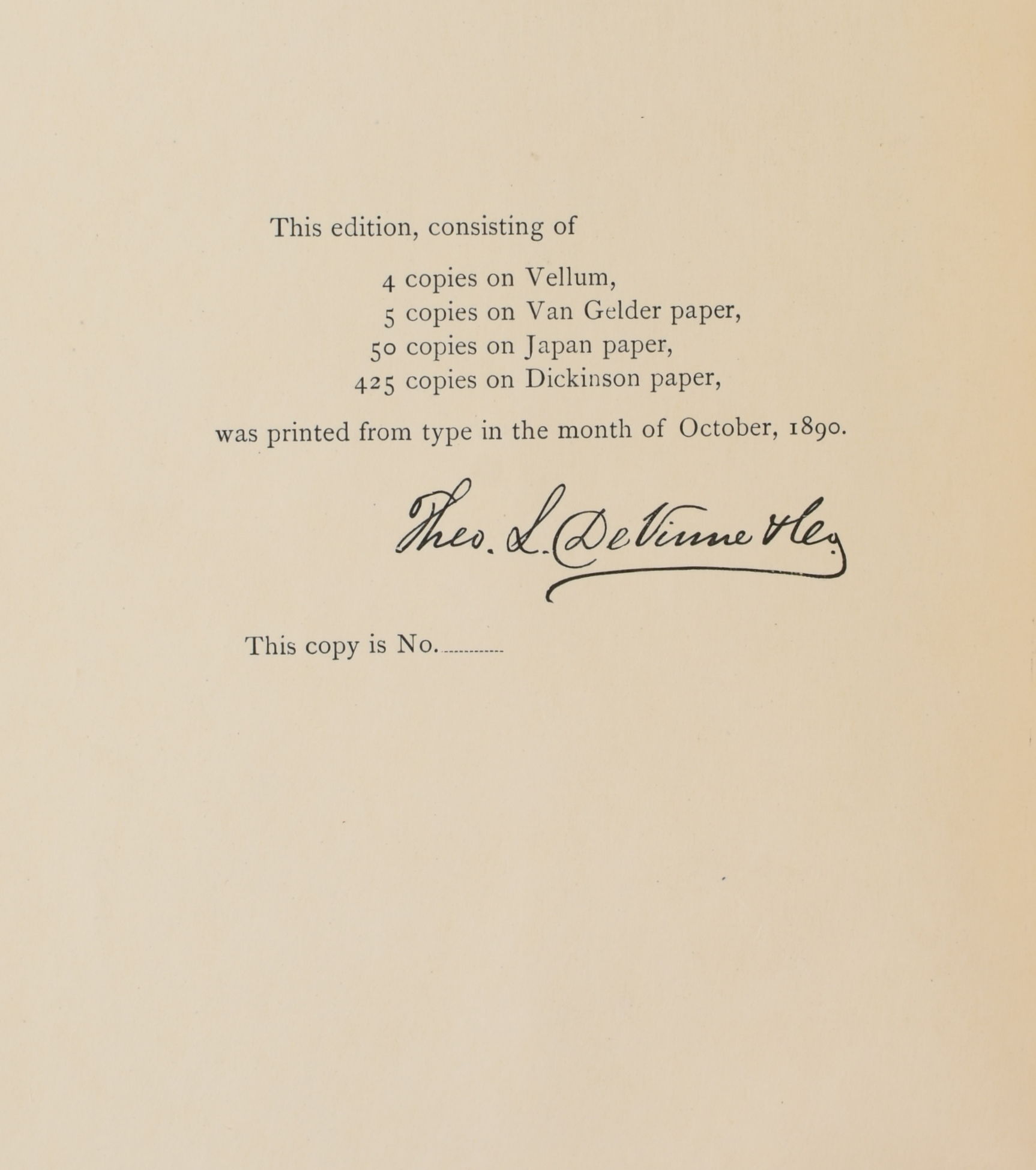 New-York: Dodd, Mead & Company, 1890. Limited Edition. Three Quarters Leather. Very Good binding. Quarto; in three-quarter blue morocco over marbled boards; spine in six compartments lettered in gilt; ix, 370 pages including the Appendix and Index, with engraved frontispiece and illustrations, including engraved chapter headpieces; the marbled paper of the upper board has a couple of small rubbed places; this is an out of sequence copy of "50 copies on Japan Paper"; there are no marks in the book.~~With a splendid printed dedication "To the members of the | GROLIER CLUB | This memoir of a bygone | Book-lover, Printer and Man-of-letters | Is Cordially Inscribed".~. Very Good binding.