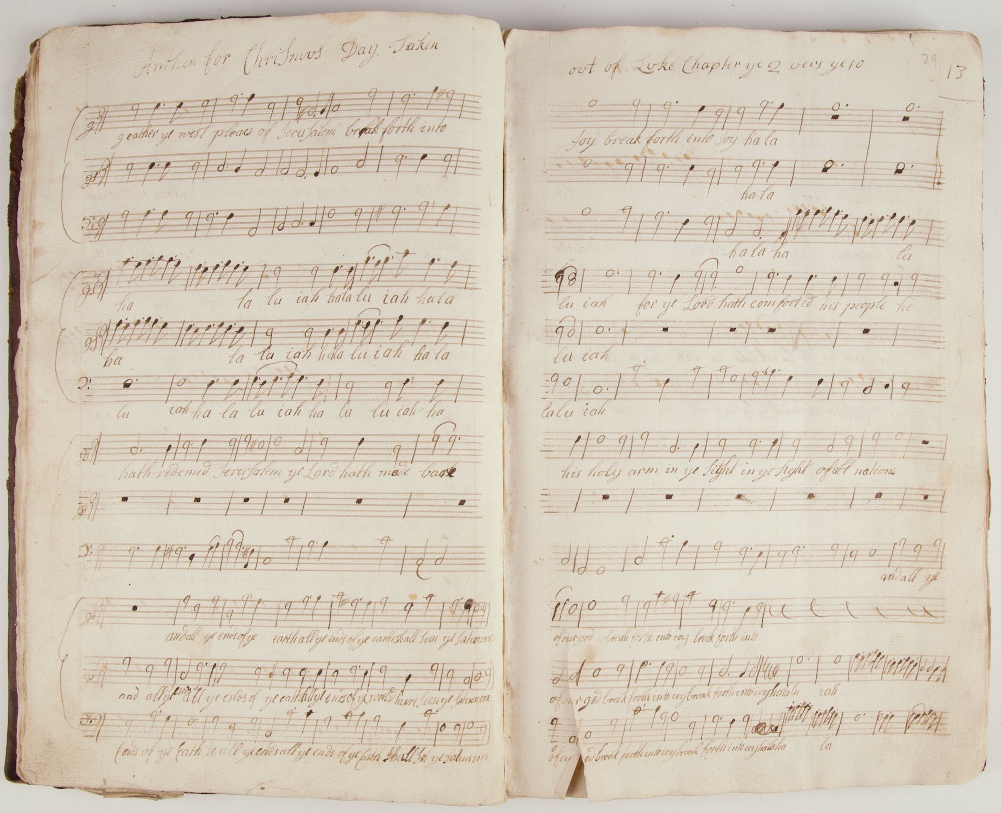 7) Anthem for Christmas Day Taken out of Luke Chapter ye 2[nd] vers[e] ye 10[th], "Geather ye west pleaes of Jerusalem," pp. 28-30