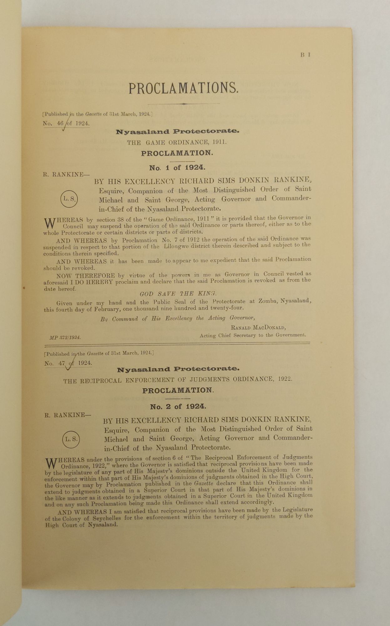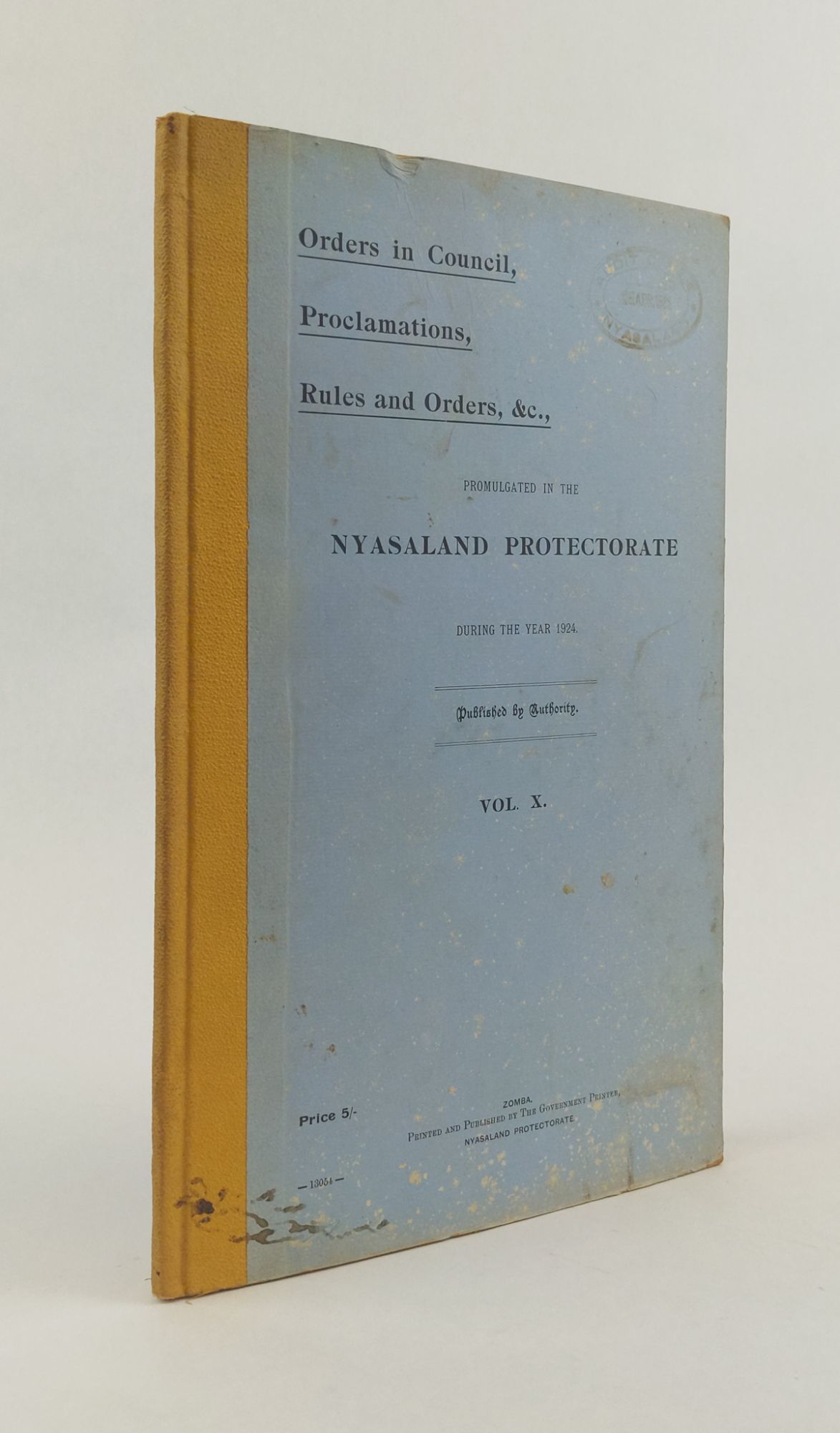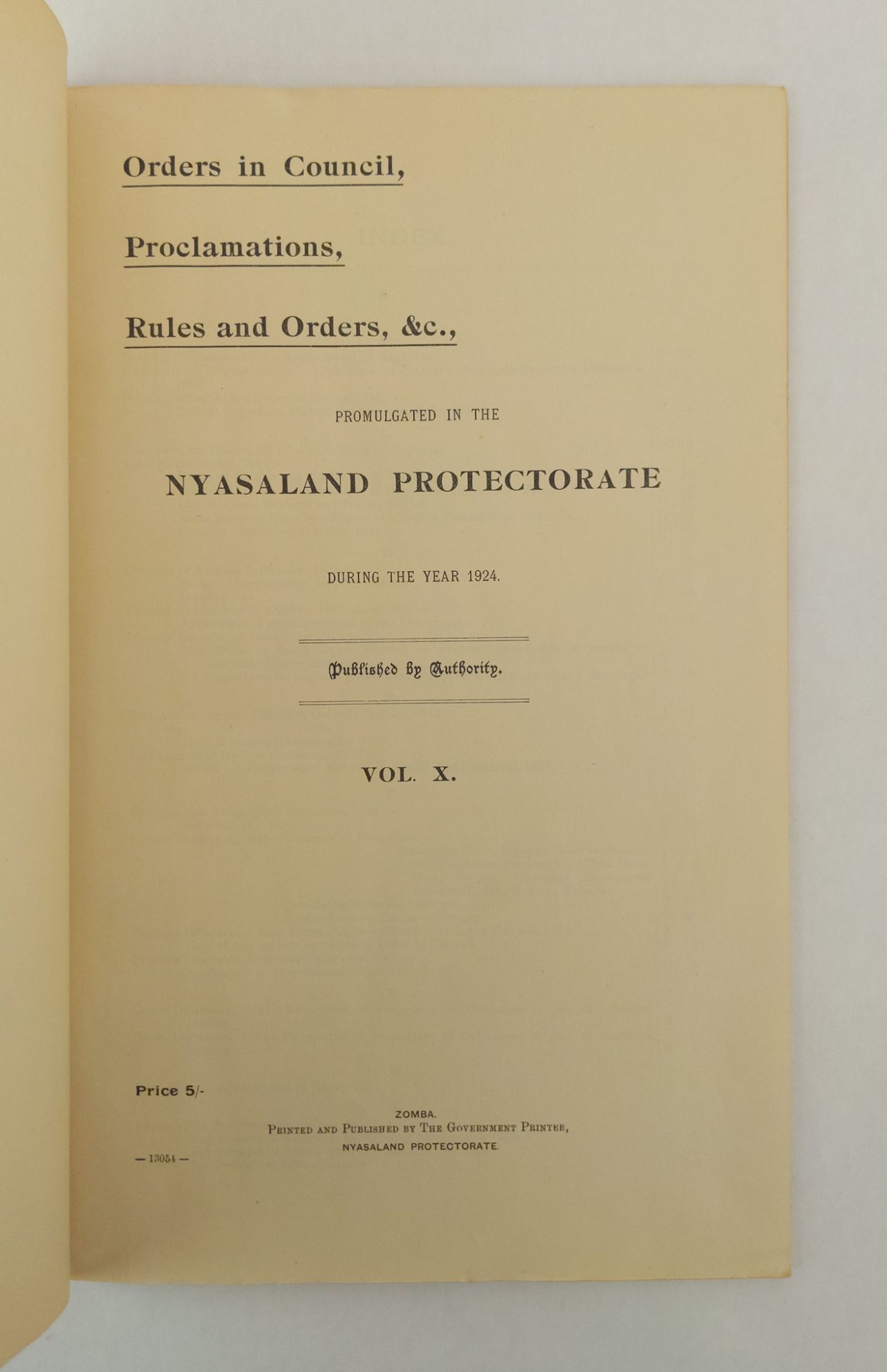 ORDERS IN COUNCIL, PROCLAMATIONS, RULES AND ORDERS, &C., PROMULGATED IN THE NYASALAND PROTECTORATE DURING THE YEAR 1924. VOL. X.