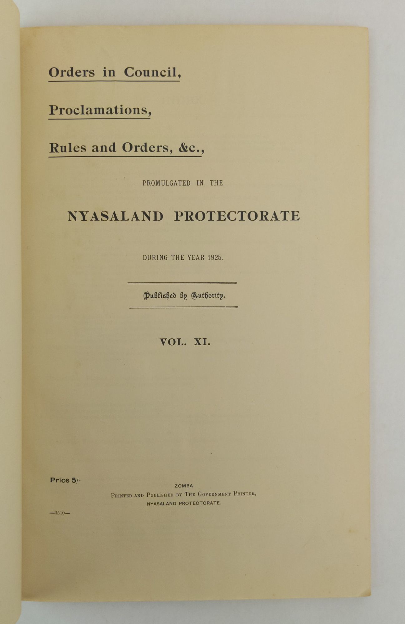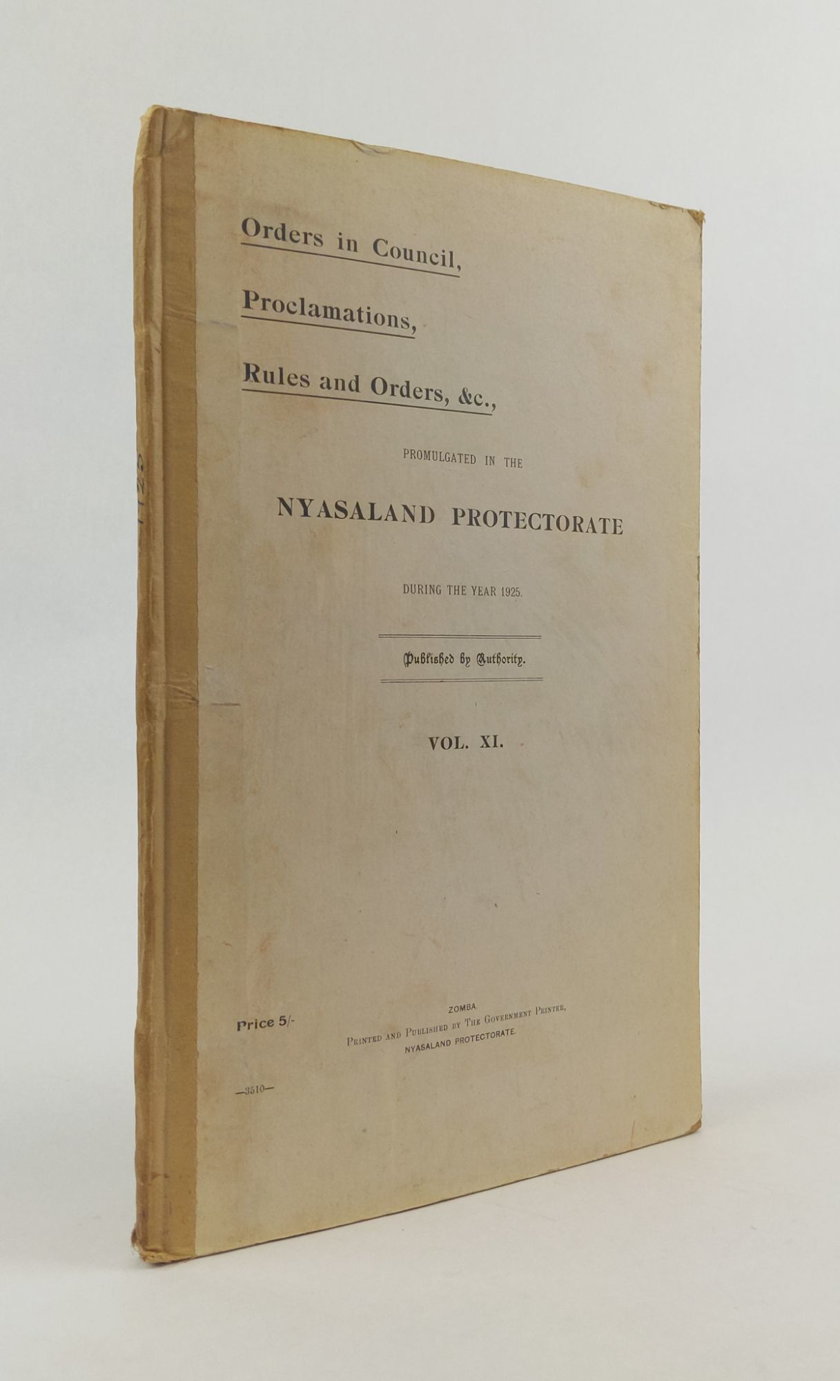 ORDERS IN COUNCIL, PROCLAMATIONS, RULES AND ORDERS, &C., PROMULGATED IN THE NYASALAND PROTECTORATE DURING THE YEAR 1925. VOL. XI
